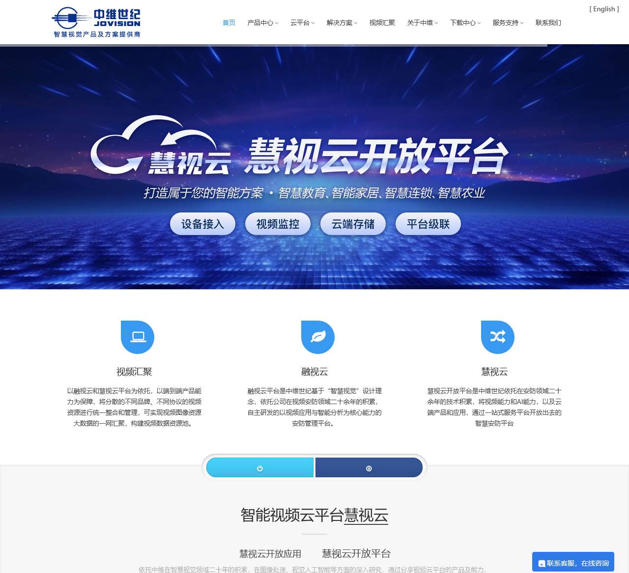 山东中维世纪科技股份有限公司(JOVISION)是一家智慧视觉产品及方案提供商。依托二十余年的研发与制造经验,目前已形成视频+AI为主的智慧视觉服务体系。服务和产品上,公司拥有慧视云、融视云、AICraft三大平台和完整的智慧视觉产品矩阵(包含智能摄像机、硬盘录像机、解码器、服务器、辅材等)。