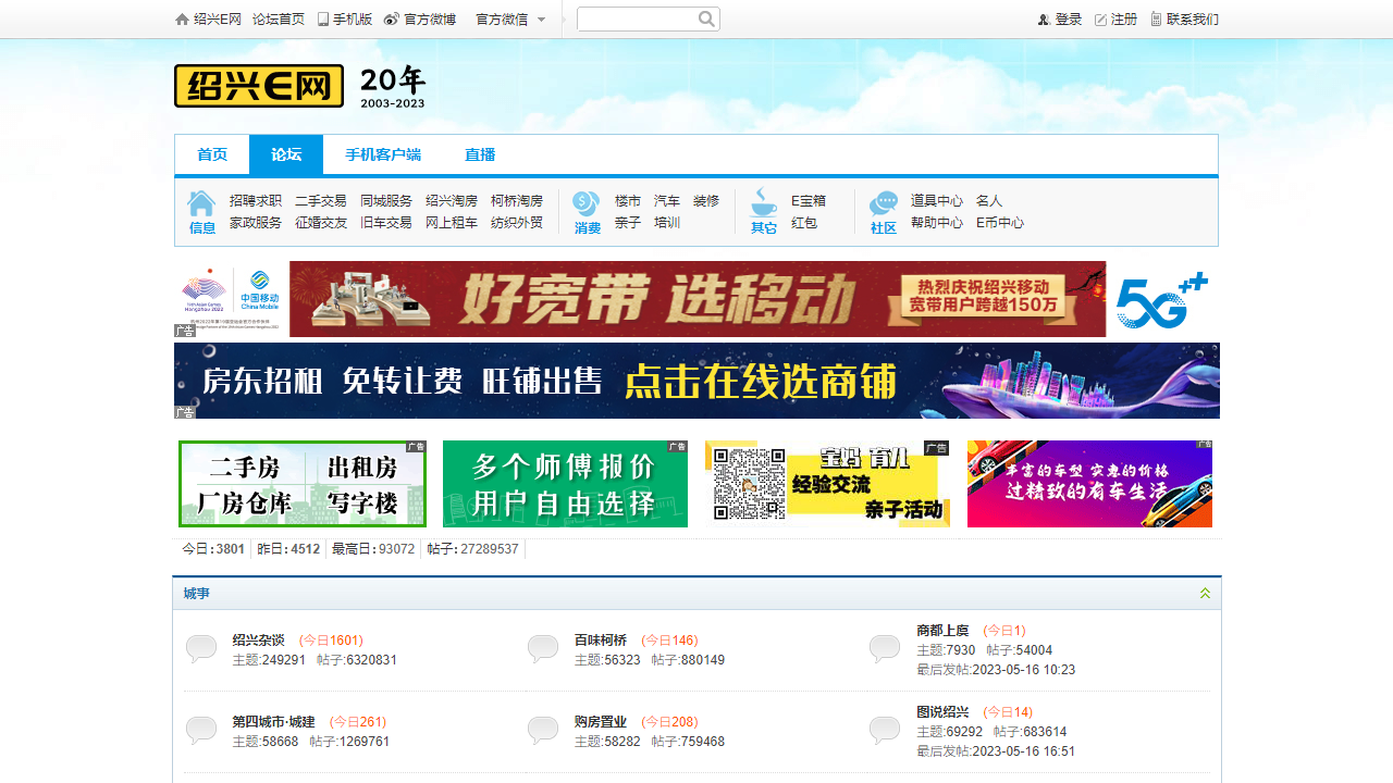 | 论坛 | 进入绍兴E网的论坛页面,参与各类讨论和交流 |