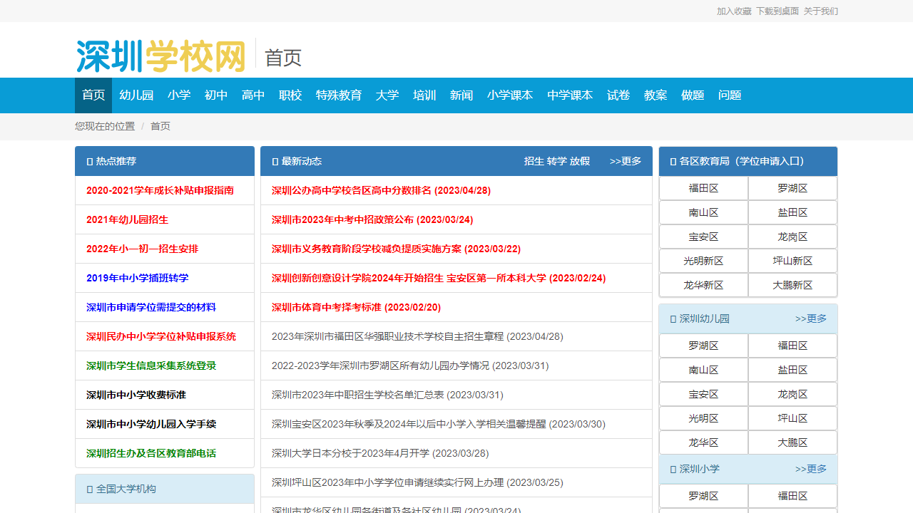 在深圳学校网的首页中,我们可以找到各类学校的链接,方便用户快速找到所需信息。以下是首页中提供的学校和相关资源的列表: