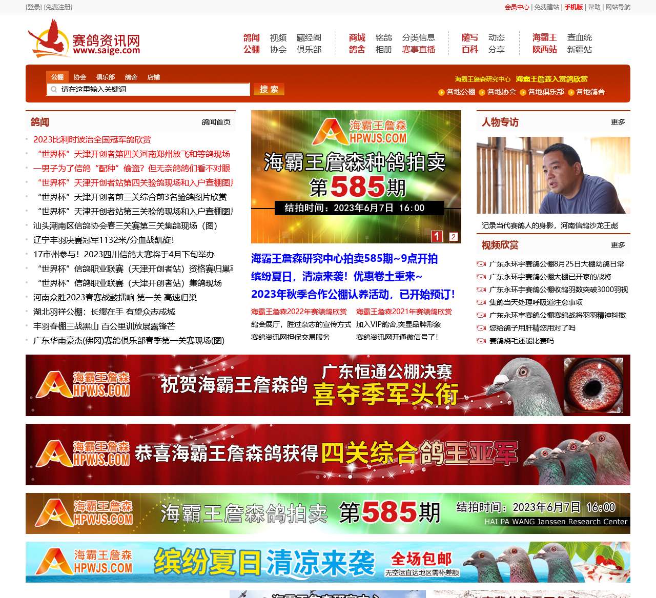 赛鸽资讯网是汇集全球信鸽赛鸽资讯,赛鸽公棚,信鸽协会,赛鸽俱乐部,信鸽视频,信鸽交易,铭鸽展示,鸽舍,鸽业,免费建站为一体的专业信鸽网站,为鸽友提供及时,全面,丰富的赛鸽资讯。