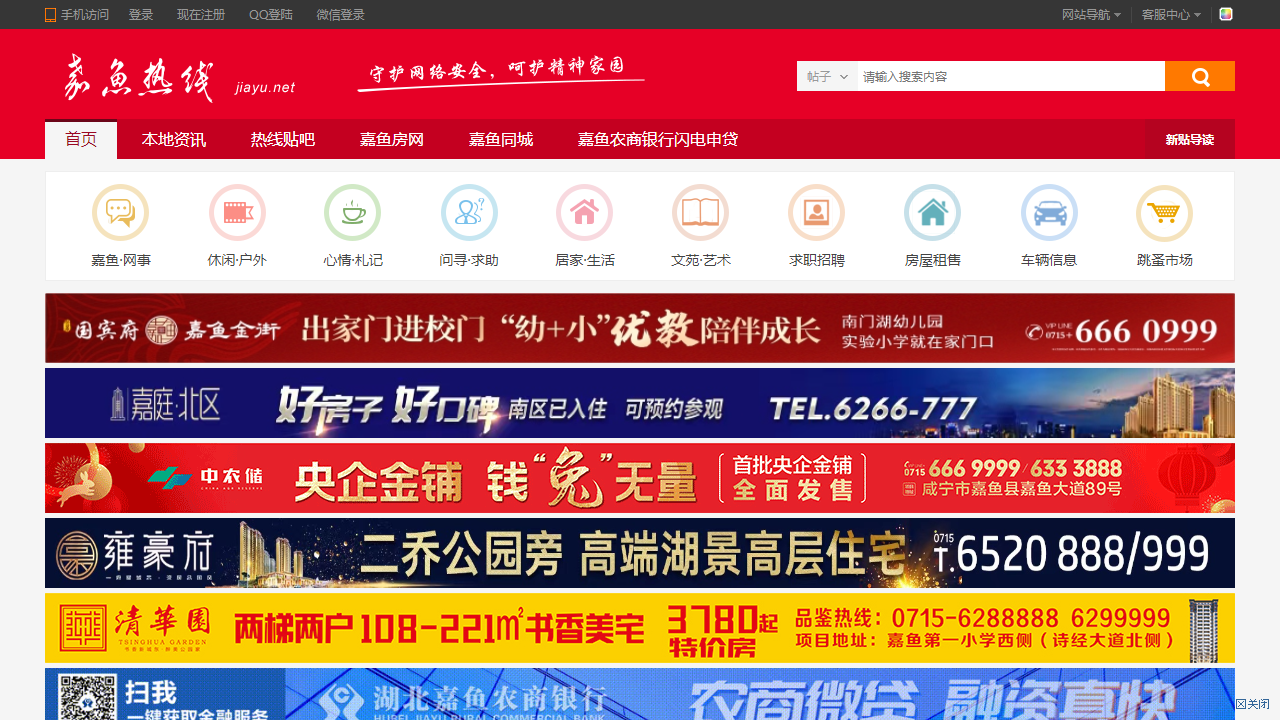 在网站首页,用户可以找到网站导航,方便快速浏览和访问网站的各个板块。嘉鱼热线提供了多个板块,包括嘉鱼·网事、休闲·户外、问寻·求助、居家·生活、文苑·艺术、心情·札记、招聘求职、房屋租售、车辆信息、跳蚤市场、媒体新闻、公告公示、南嘉人物等。这些板块涵盖了生活的各个方面,用户可以根据自己的兴趣和需求进行浏览和选择。