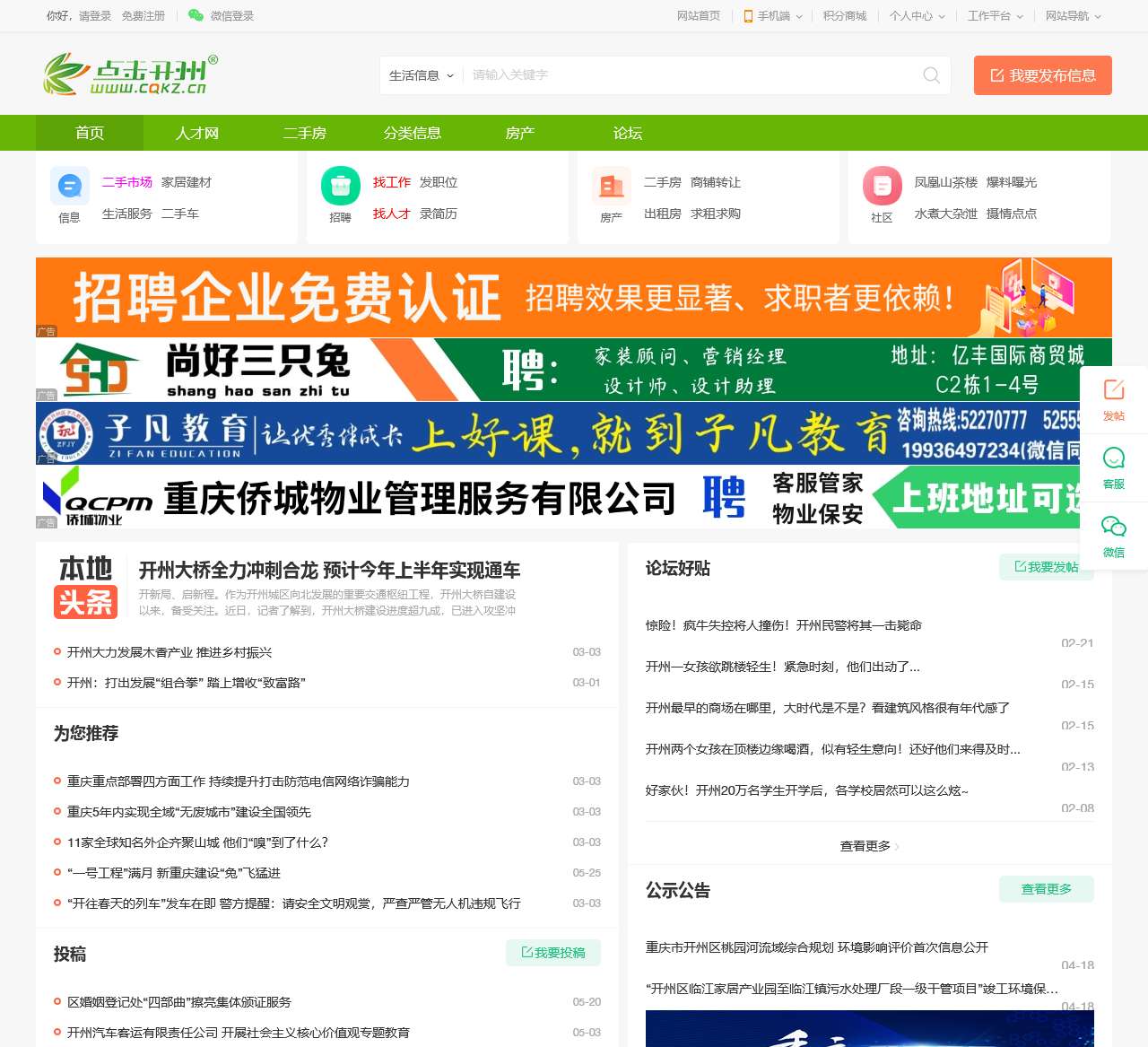 开州区本土网络媒体,点击开州是专门为开州区市民提供各类信息的本地生活门户网站,包括开州新闻、开州房产、开州论坛、开州二手等相关信息。