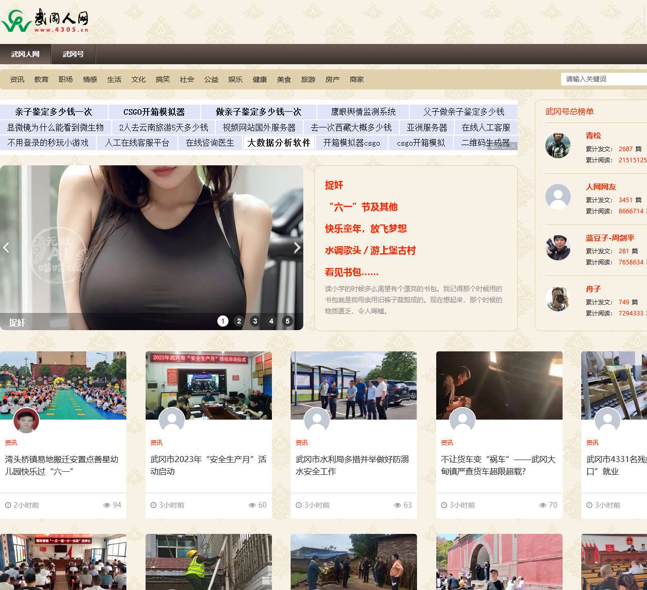 武冈人网(www.4305.cn)是湖南省武冈市的地方网站,创建于2006年,致力于提供武冈最新本地资讯、武冈本土文学、乡村人文内容、生活服务、消费购物、人际交流等网络内容。