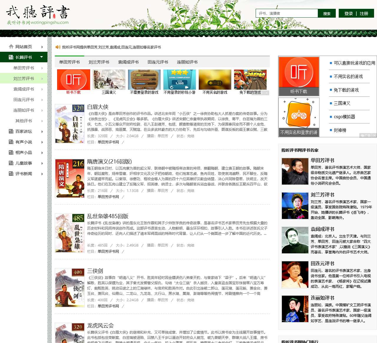 网站名称:我听评书网