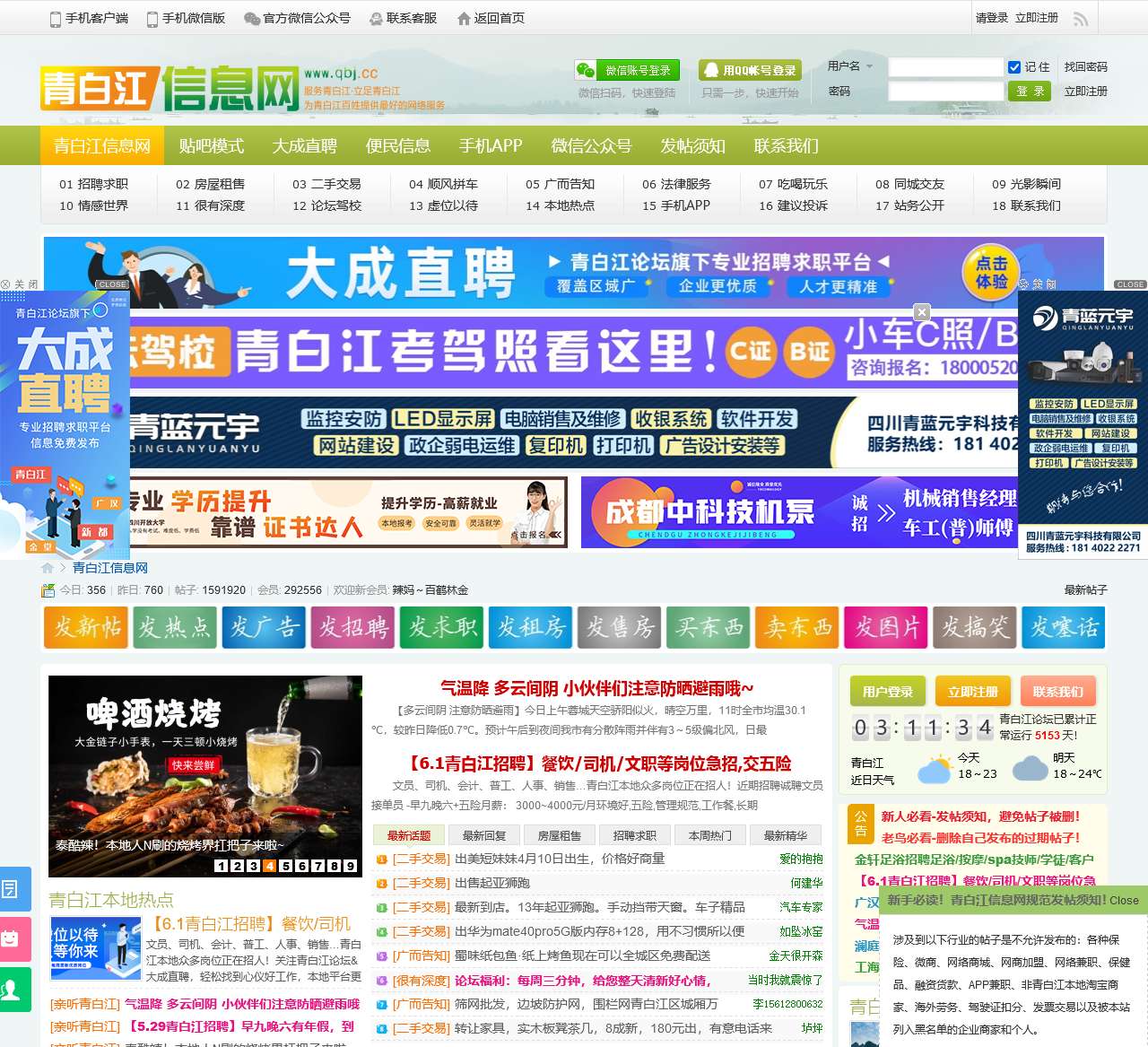 青白江论坛是青白江信息网的官方交流平台,为用户提供丰富多彩的讨论话题和便民信息。论坛首页的内容如下: