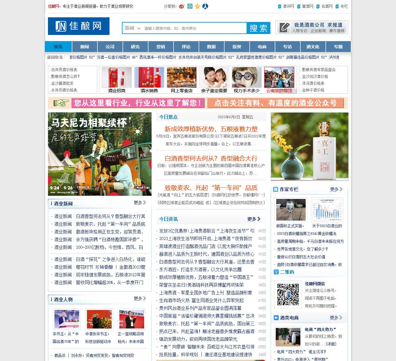 同时,佳酿网还为用户提供了专栏文章,涵盖了名酒网、冀酒网、酒评网等多个专栏,供用户深入了解不同类型的酒类知识。