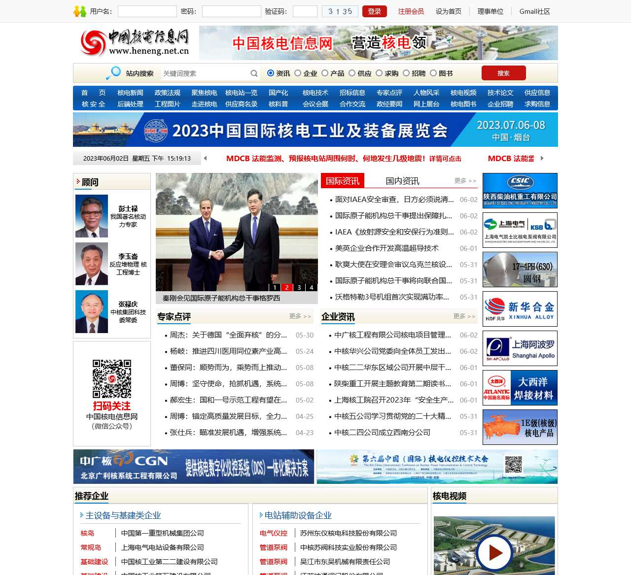 中国核电信息网是一个综合性的核能领域网站,为用户提供核电相关的新闻、政策法规、核电站信息、国产化进展、核电技术、招标信息、专家点评、人物风采、核电视频、技术论文、供应信息、核安全、后端处理、工程图片、走进核电、供应商名录、核科普、会议会展、合作交流、政经要闻、网上展台、核电图书、企业招聘、求购信息等内容。