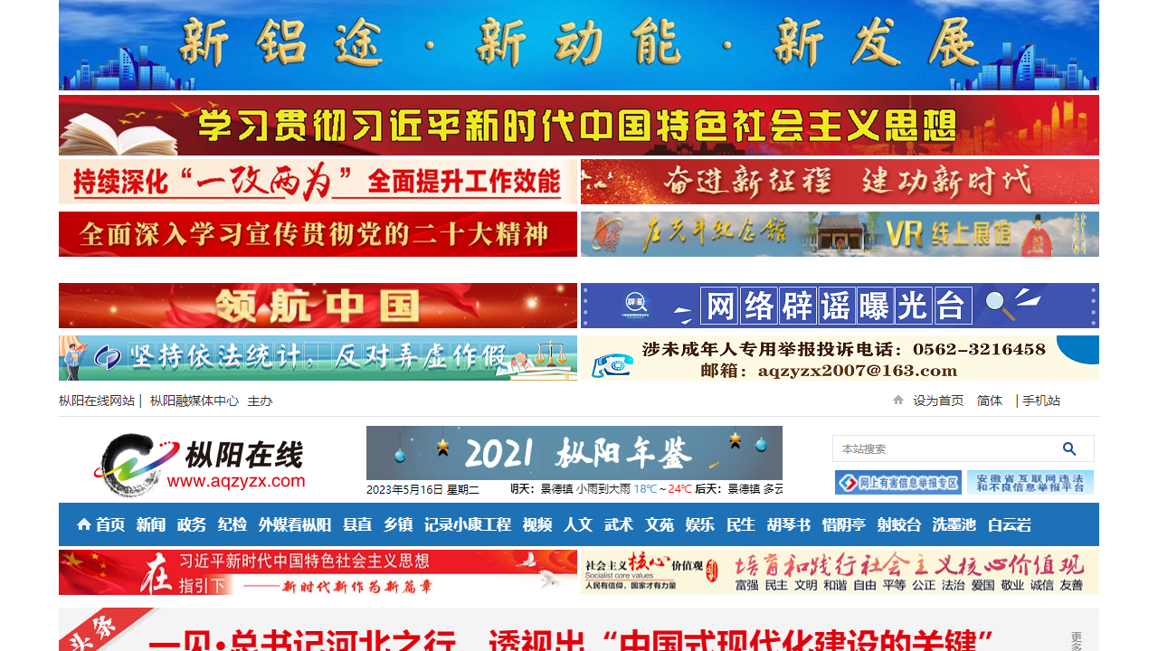 枞阳在线是枞阳县的融媒体中心,提供全面的新闻和信息服务。通过枞阳在线,您可以获取最新的新闻动态、政务信息、纪检报道、外媒观察等内容。以下是枞阳在线首页的主要内容: