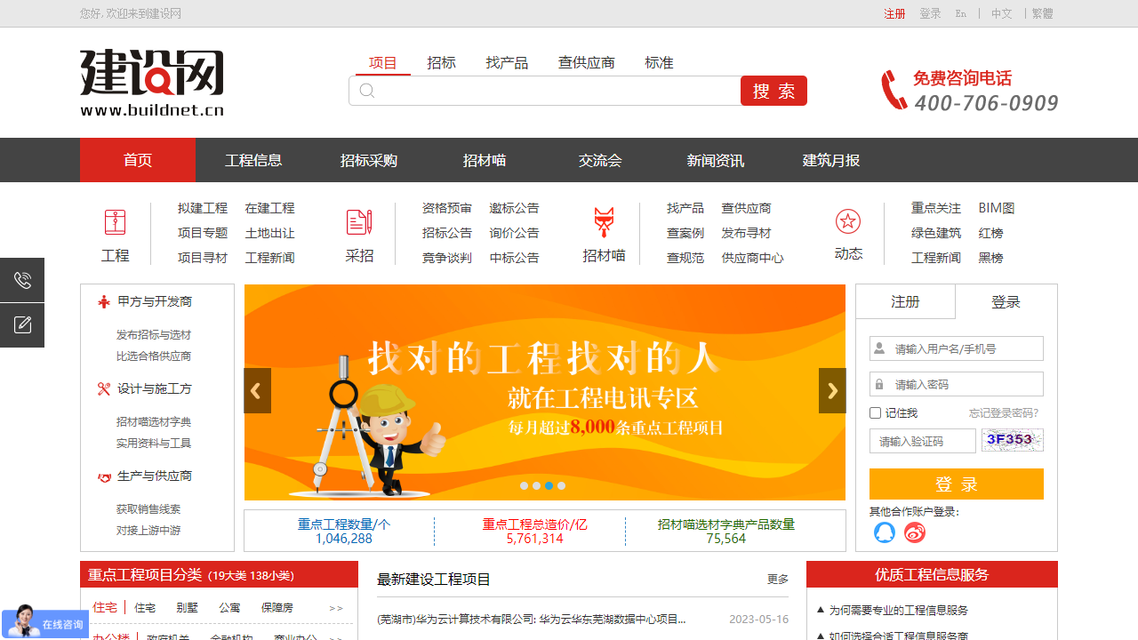 建设网是一个专注于建筑工程信息的网站,为广大建筑行业提供全方位的服务。网站首页提供了丰富的内容和功能,涵盖了注册、登录、项目、招标、找产品、查供应商、标准、工程信息、招材喵、交流会、新闻资讯等板块。