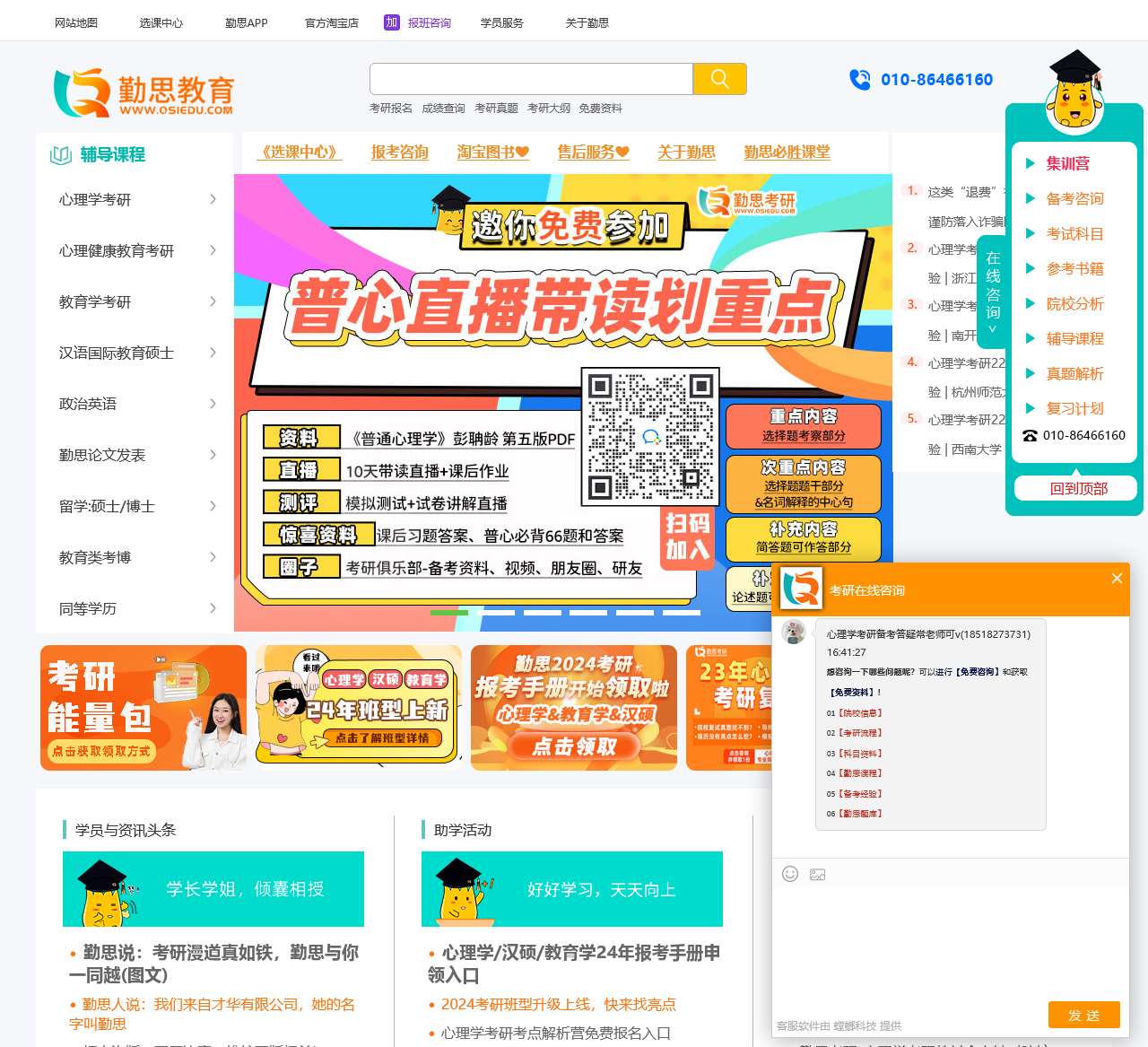 京师勤思教育,提供心理学考研,教育学考研,汉硕考研,政治英语等项目辅导,期刊论文写作指导;还为备考研究生的同学整理了考研培训网络课程、免费考研资料讲义等。