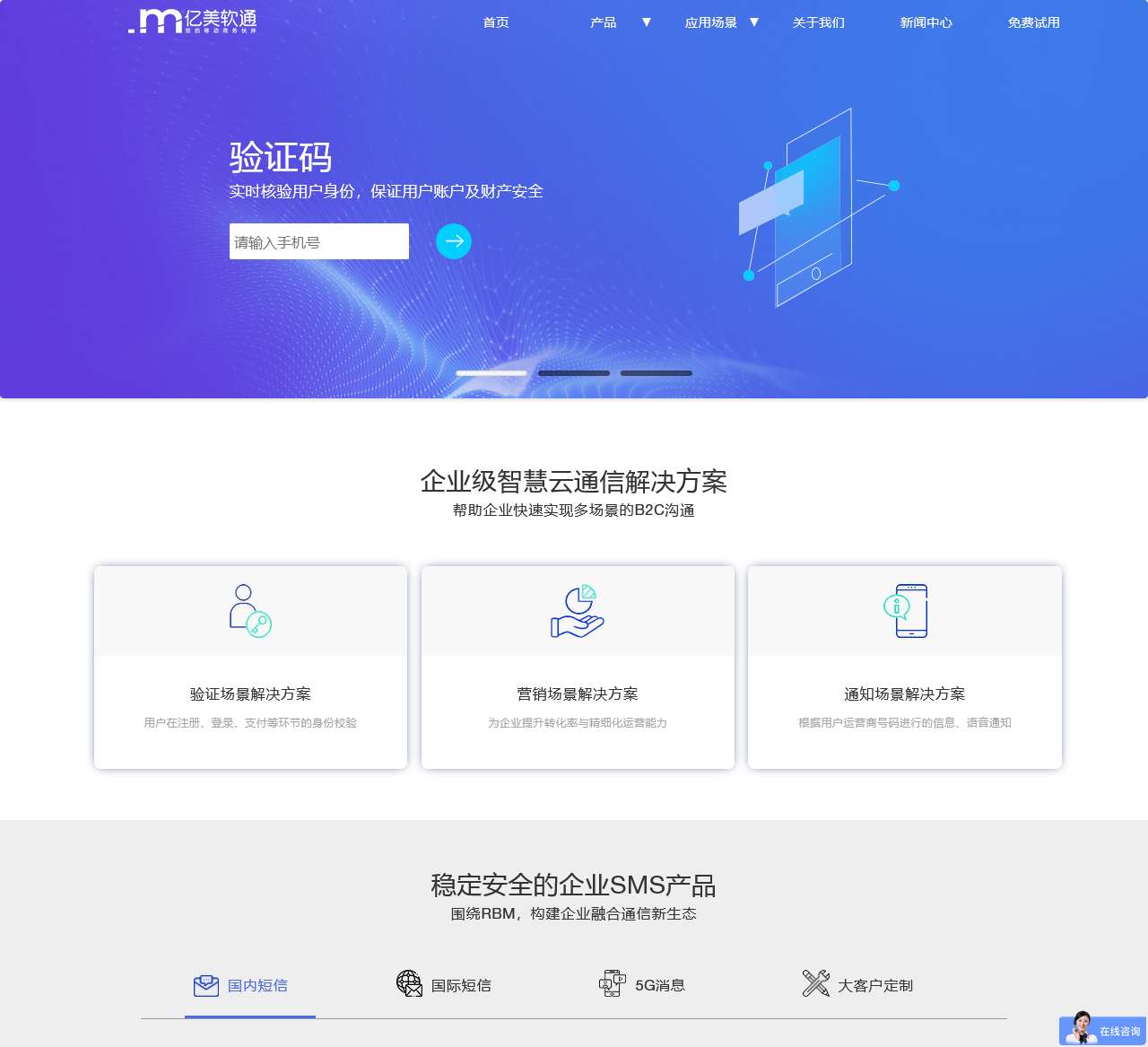 亿美软通为企业提供国内国际短信验证码,短信平台,会员营销短信,智能语音及5G消息,短信菜单,消息实名等企业级RCS解决方案.提供短信接口,专享优质短信通道资源.快速接入上线,三网合一,极速稳定.咨询电话4008107255.
