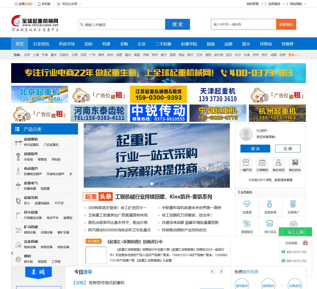 中国起重机械网是一个专注于起重机械行业的综合性网站,提供起重机械产品的信息发布、采购管理、企业名录、行业资讯等服务。通过该网站,用户可以轻松地找到所需的起重机械产品和相关信息。