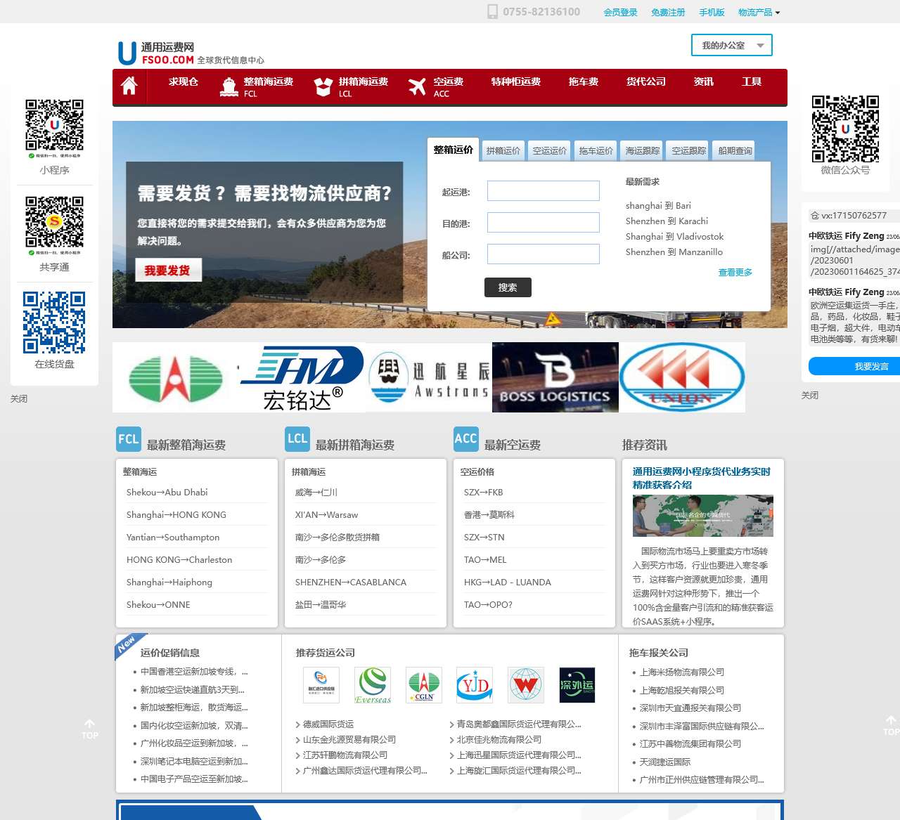 以下是通用运费网首页内容的整理: