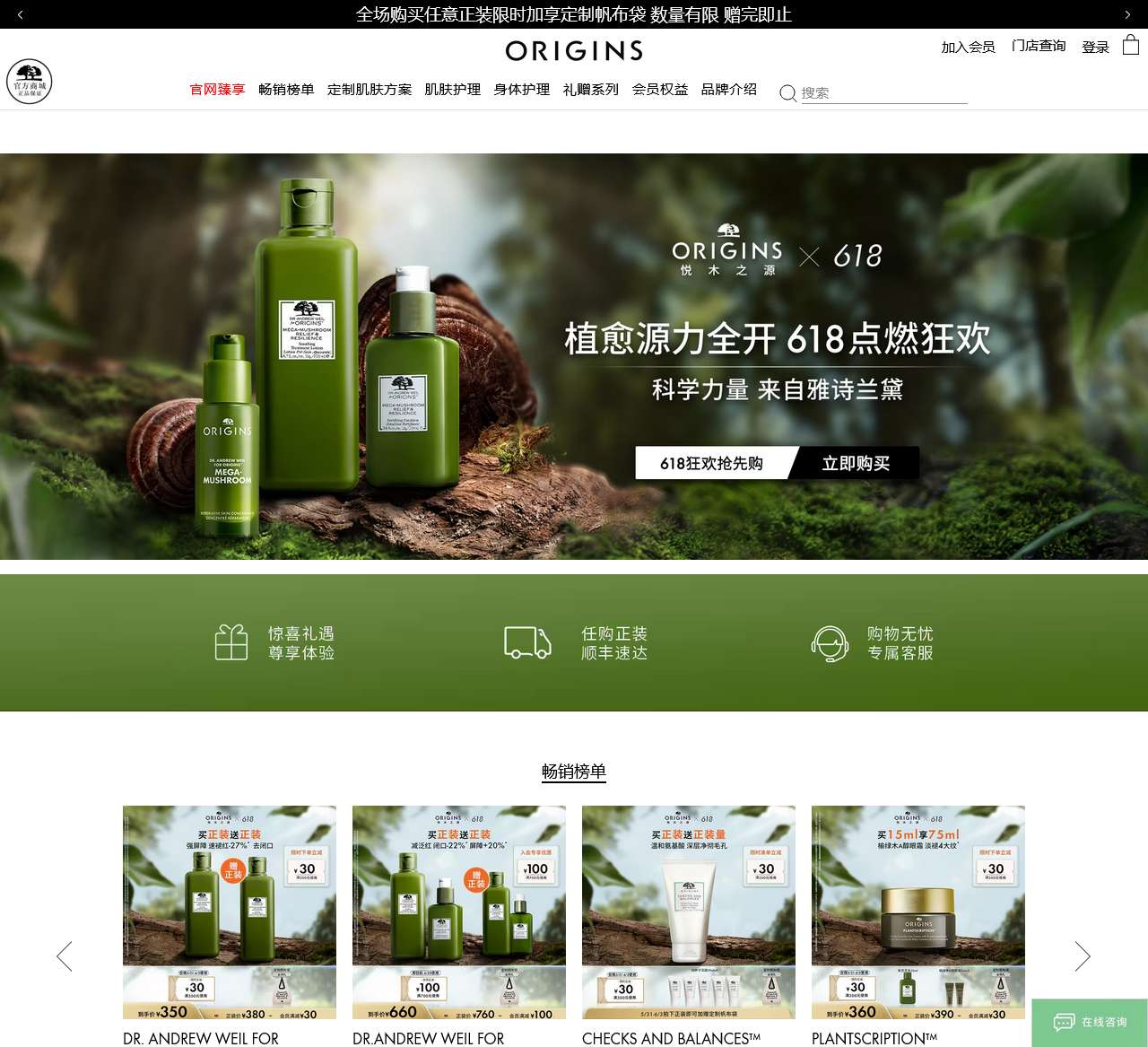 ORIGINS悦木之源,天然植物护肤品牌,100%官方正品保证。为您臻选灵芝系列,咖啡因系列,泥娃娃面膜等明星产品。更有官网独享精美礼盒套装。免费订购热线:400-603-1566