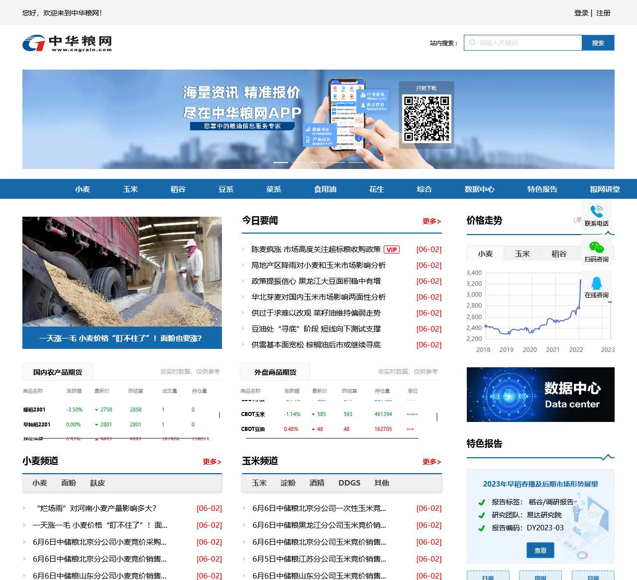 以下是中华粮网首页的一些重大内容,旨在为用户提供粮食市场的关键信息和数据: