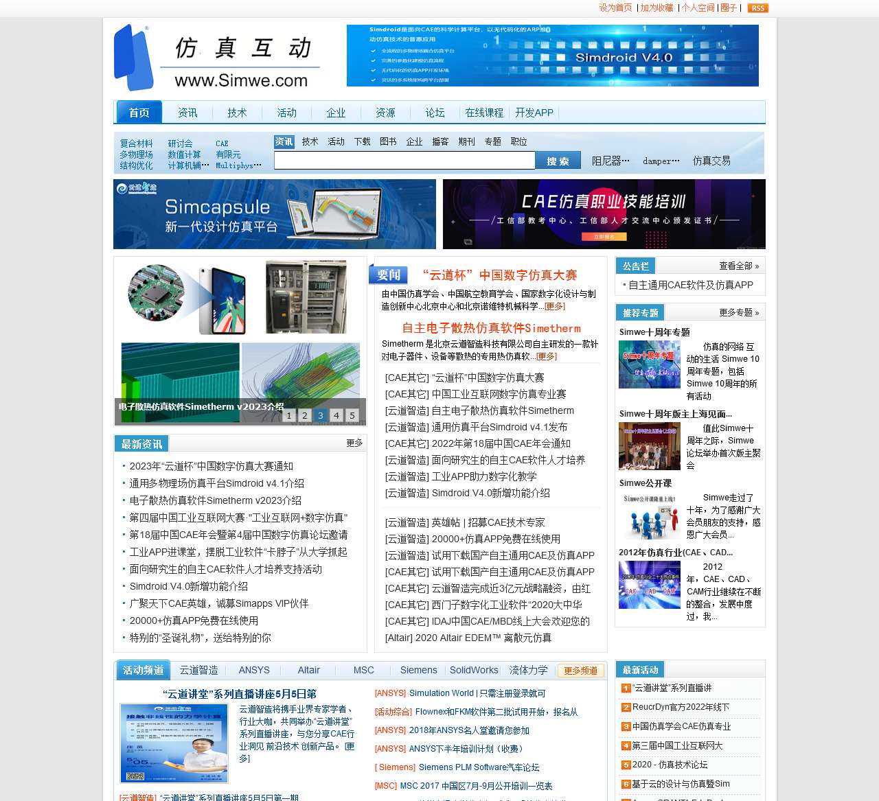 资讯:我们定期发布最新的仿真领域资讯,包括技术进展、行业动态和最新研究成果等。您可以了解到2023年“云道杯”中国数字仿真大赛的通知,以及Simdroid v4.1和Simetherm v2023等软件的介绍。