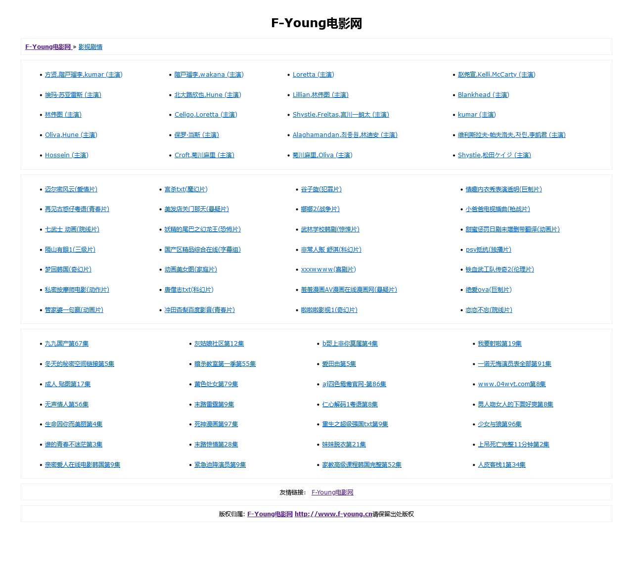 F-Young电影网网提供最新电影电视剧高清在线观看,最新最快的电影网站就上F-Young电影网院,YY6080官网网址www.F-Young.cn
