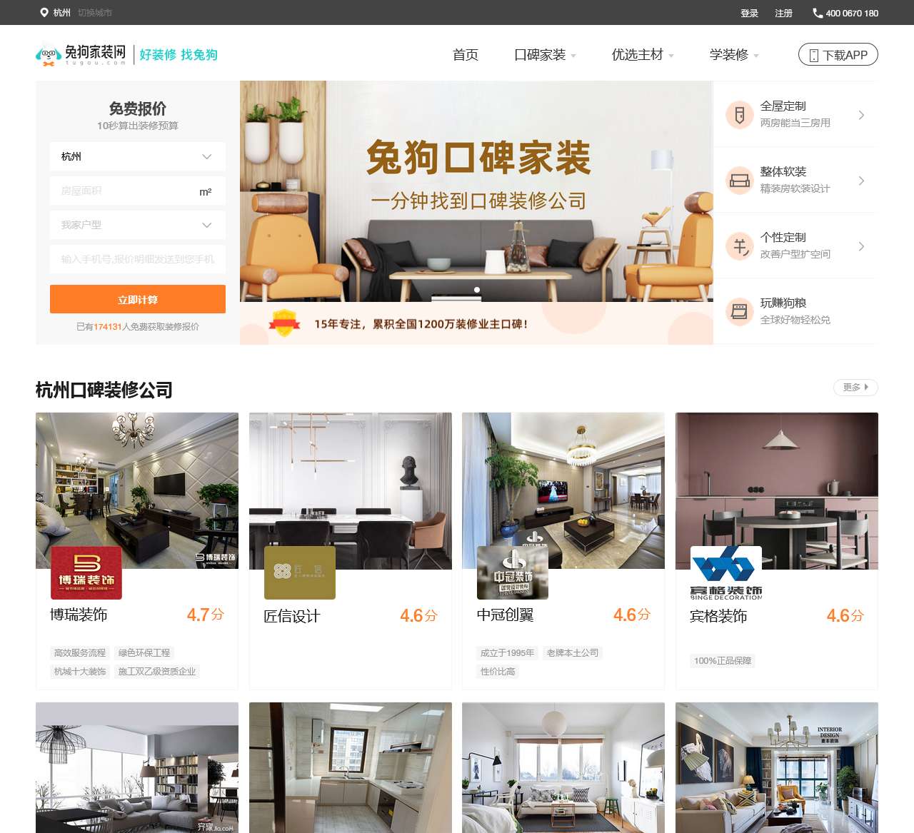 兔狗家装在全城严选口碑装修公司和优质建材家具品牌,提供一站式装修解决方案和全程精细监管,为广大业主提供透明、保障、省心的装修服务。
