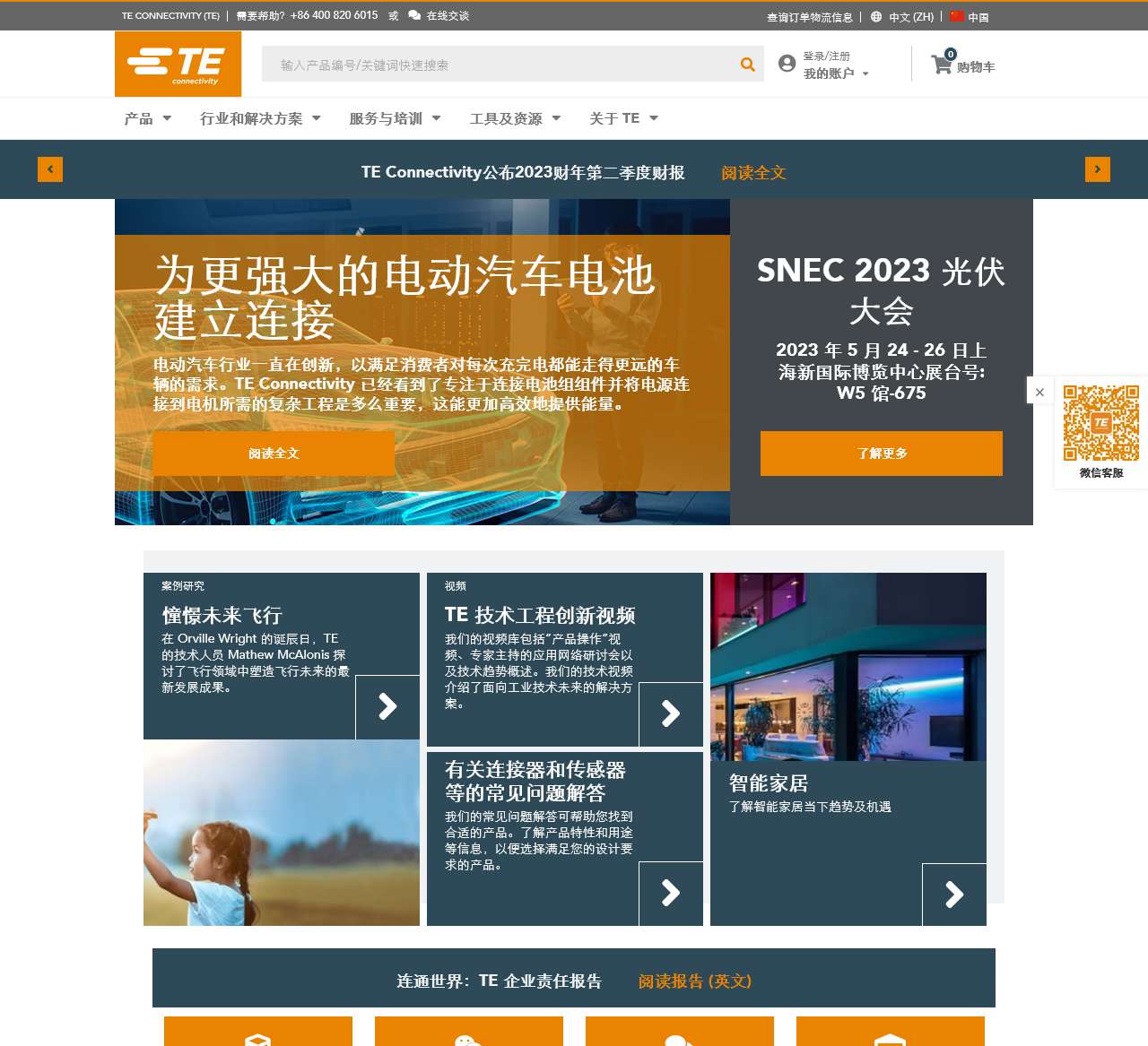 TE Connectivity还提供购物车和在线登录/注册功能,方便用户选择和购买他们所需的产品。如果需要协助,您可以拨打+86 400 820 6015或通过邮件联系TE Connectivity。