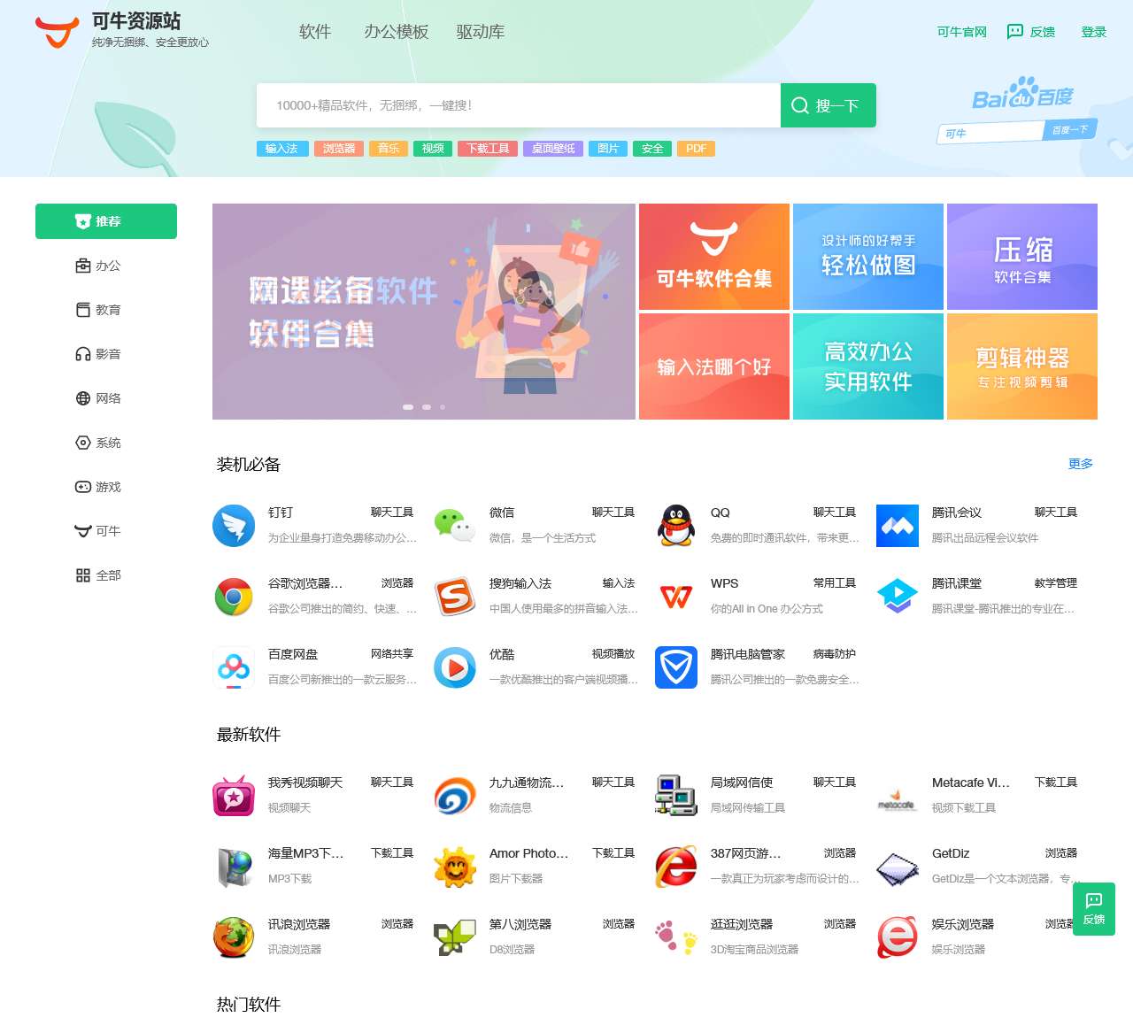 可牛资源站是一个纯净无捆绑、安全可靠的网站,提供各种软件、办公模板、驱动库等资源。在可牛官网,你可以找到以下分类的资源:软件、输入法、浏览器、音乐、视频、下载工具、桌面壁纸、图片、安全、PDF等。另外,还有更多分类供你选择。
