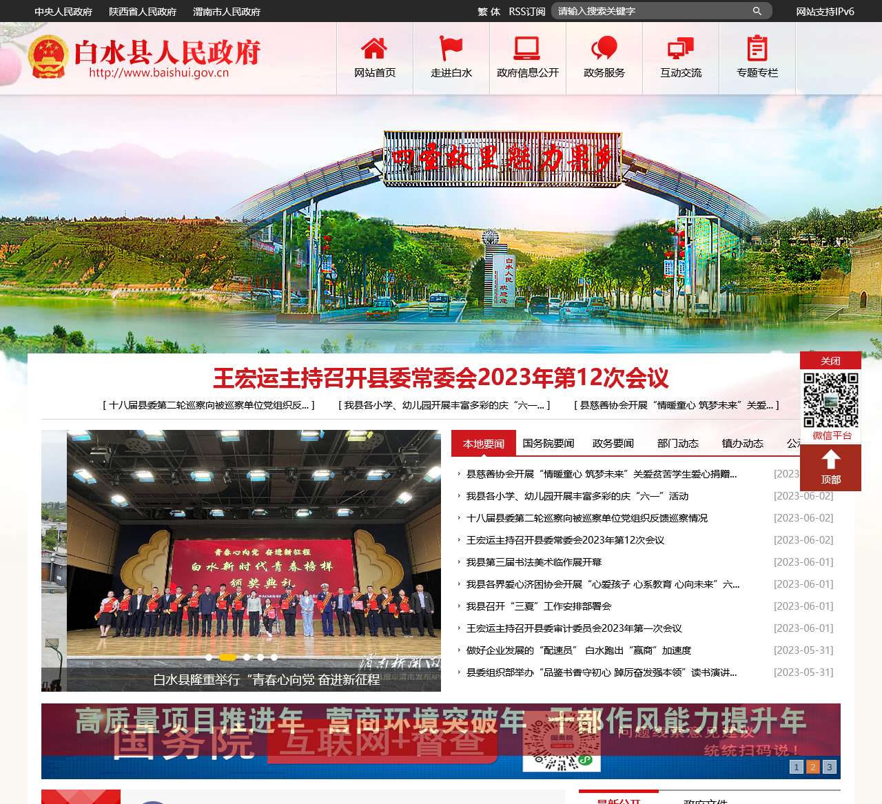 白水县人民政府网是白水县政府的官方网站,旨在为市民和外部用户提供政府相关的信息和服务。以下是对首页内容的整理: