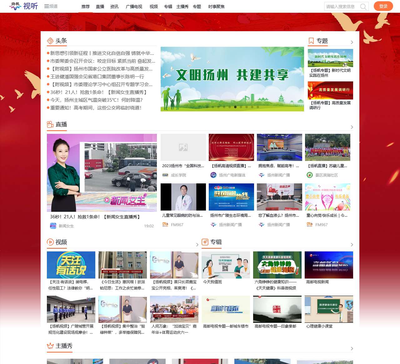 《扬州网络电视》是扬州市领先的综合网络电视平台,为您提供最新的扬州新闻、直播节目、视频专辑和主播秀等精彩内容。我们致力于向广大观众提供全面、及时、优质的信息服务。