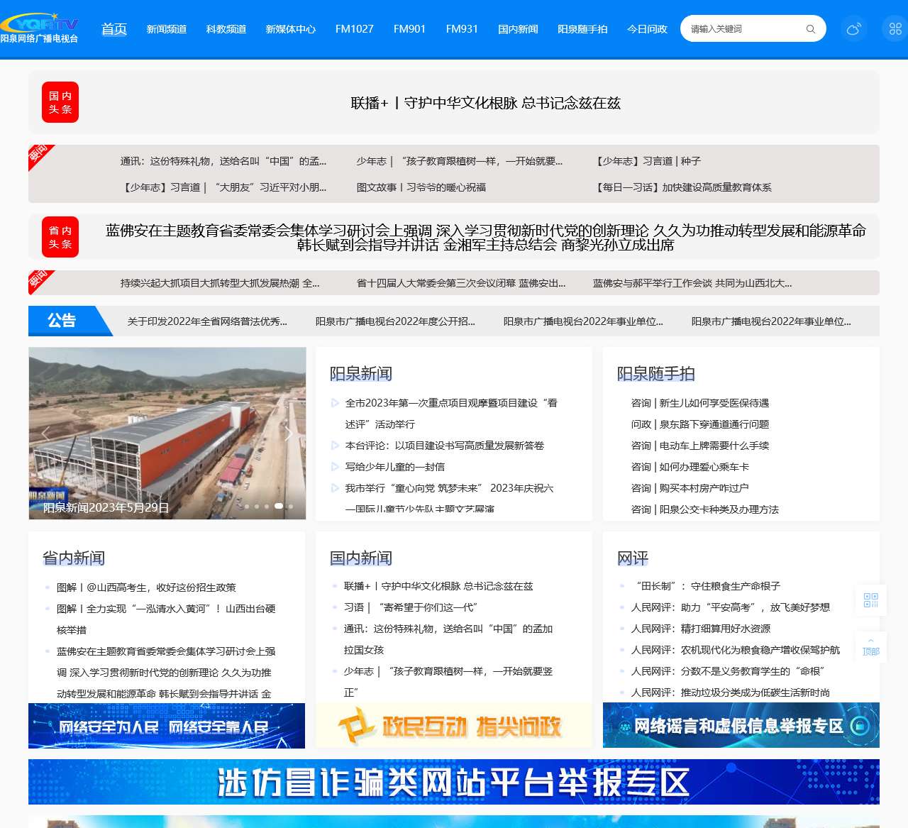 新闻频道是我们的核心内容之一,提供包括国内新闻、阳泉随手拍、今日问政等丰富的新闻报道和信息。我们致力于守护中华文化根脉,将总书记的重大讲话和思想引领新征程等内容展示在国内头条位置,同时还提供了少年志、图文故事和每日一习话等栏目,涵盖了各个年龄段和群体的关注点。