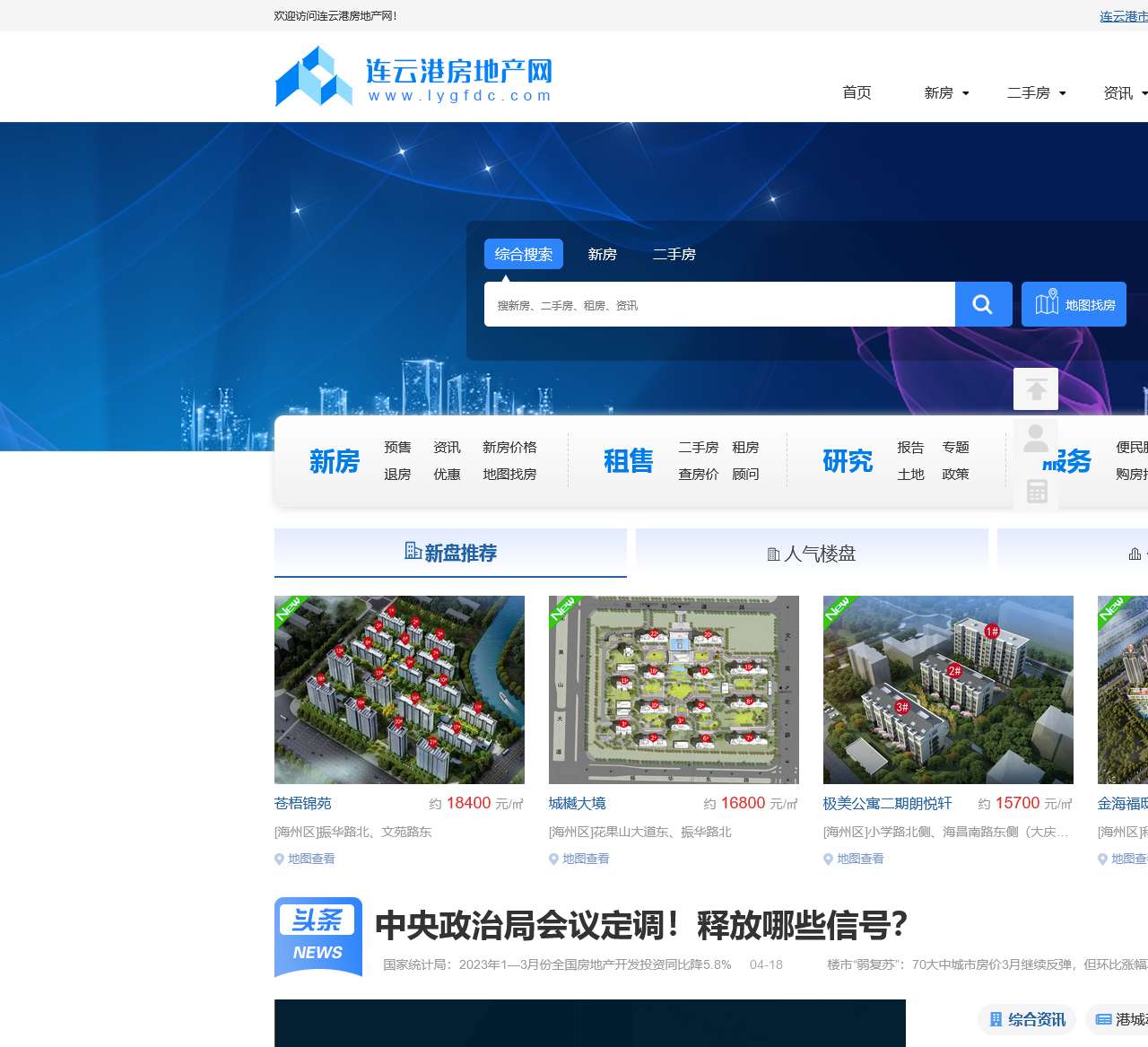 在综合资讯板块,连云港房地产网提供了丰富的房地产资讯,包括公示公告、优惠资讯、港城动态、图片新闻等,用户可以及时获取最新的房地产动态和政策信息。