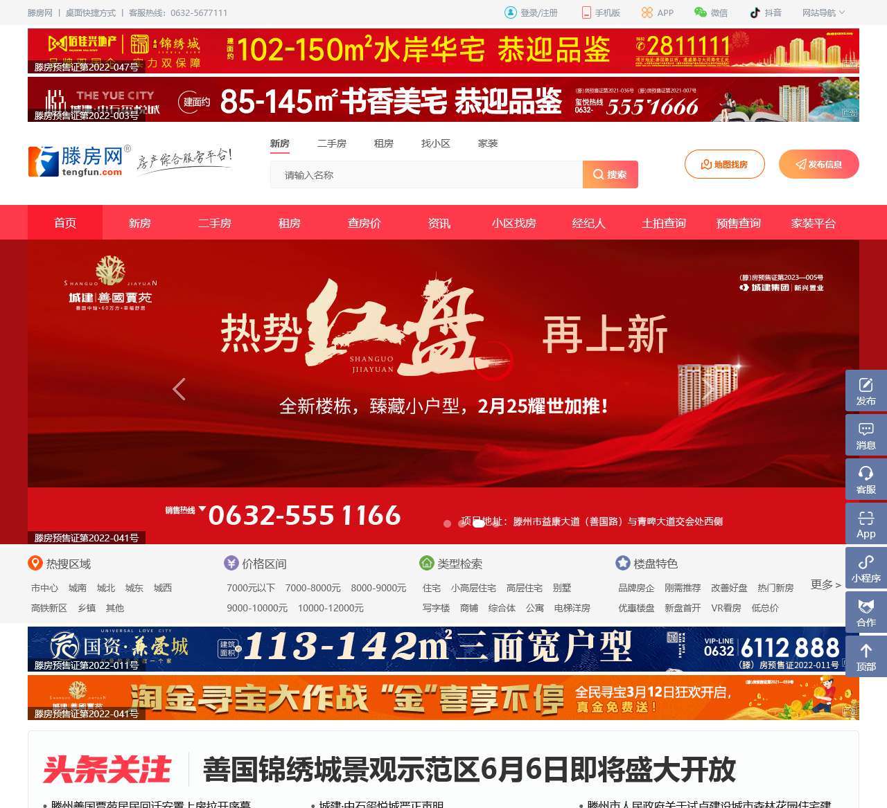 新房:提供滕州市各个区域的新房信息,包括楼盘大全、房产问答、学校划片等内容,协助用户了解滕州市的新房情况。