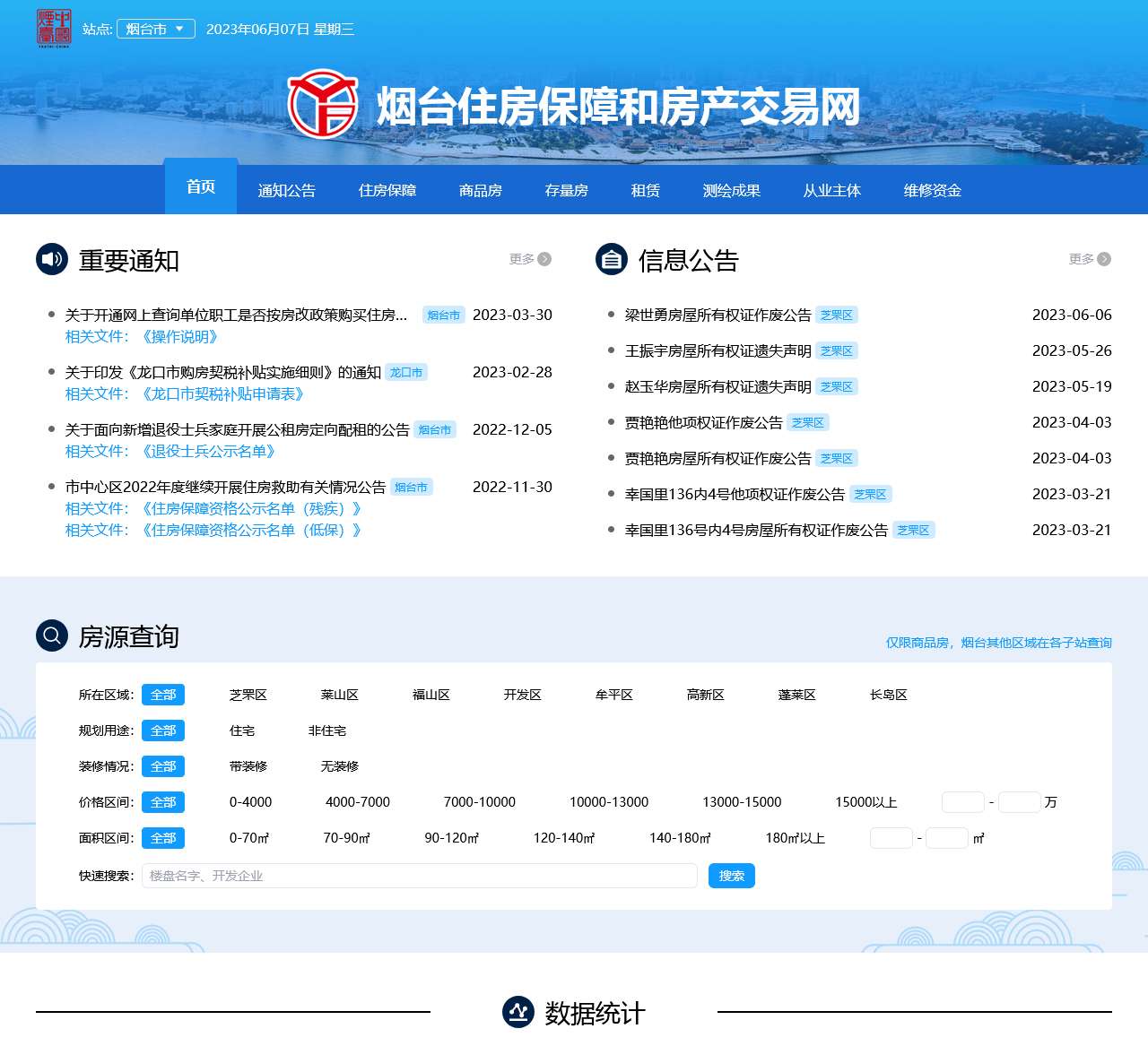 烟台住房保障和房产交易网,为人民群众提供可靠的房产查询、住房保障查询、信息公示等服务。