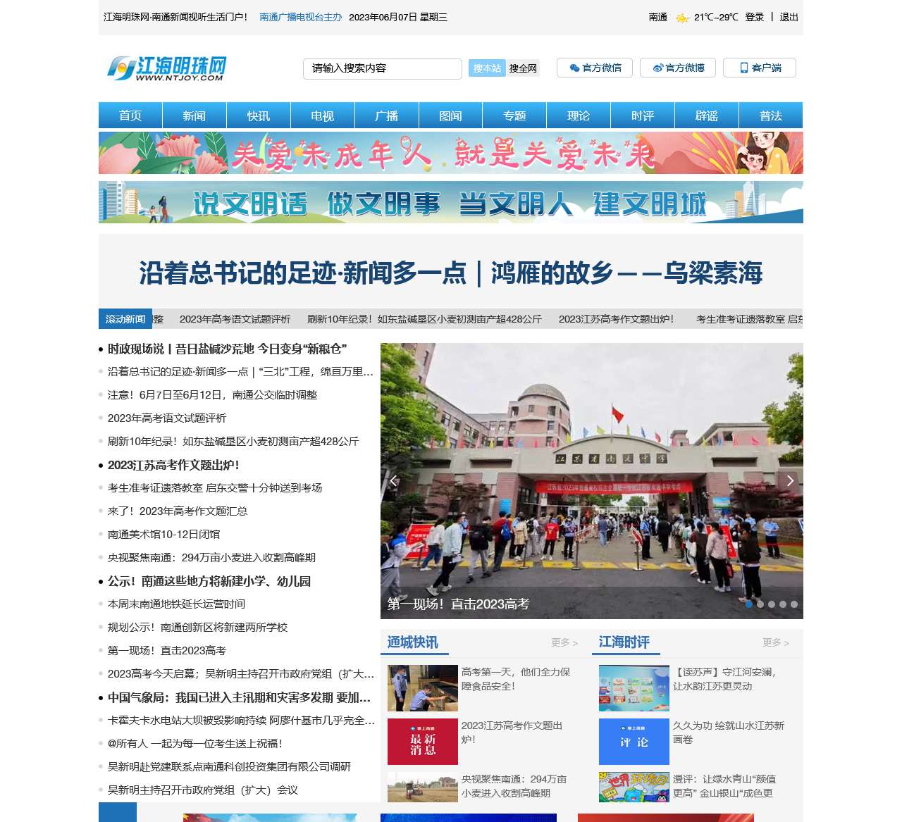 江海明珠网是一个专注于报道江苏南通地区新闻的网站,提供丰富的新闻内容和相关专题报道。以下是网站首页内容的整理: