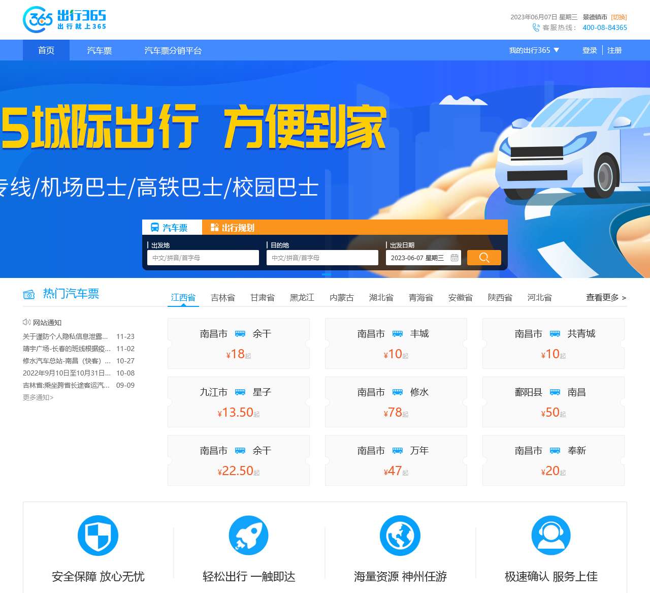 汽车票预订查询,大巴车票查询,火车票查询,周边游信息,景点门票信息就上 出行365出行365综合出行服务平台,为您独家定制出行方案。
