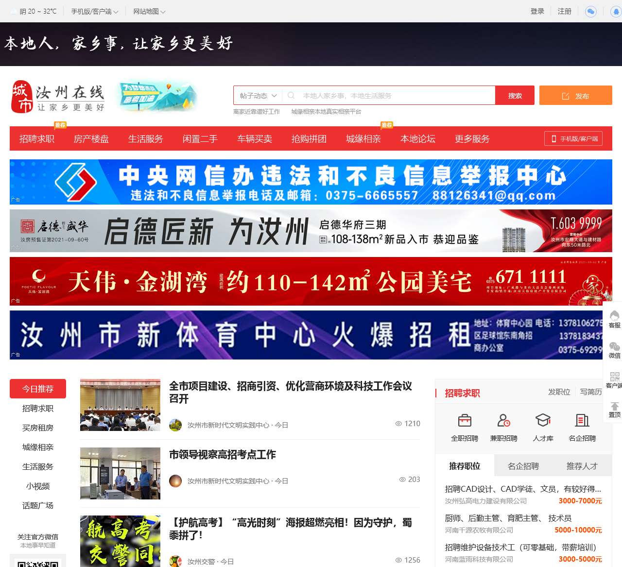 河南汝州市综合信息门户网站,免费提供汝州人才招聘求职信息、房产房价信息、同城二手信息等是汝州目前信息更新最快的网站