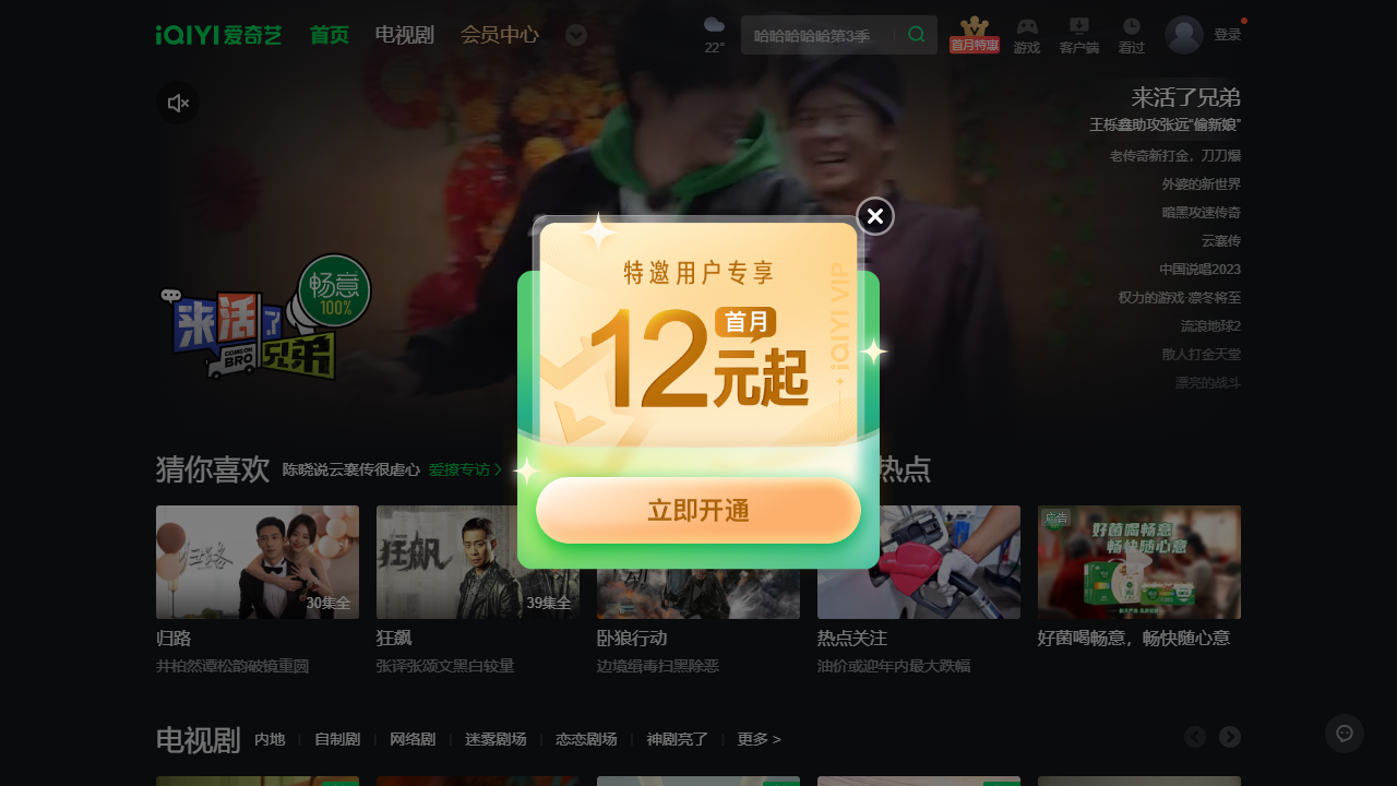 爱奇艺(IQIYI.COM)拥有海量、优质、高清的影视剧集等视频内容。爱奇艺VIP限时新用户特惠:首月6元,会员畅看顶级视听品质体验!当前热播《唐朝诡事录》《一年一度喜剧大赛2》《航海王》《请君》