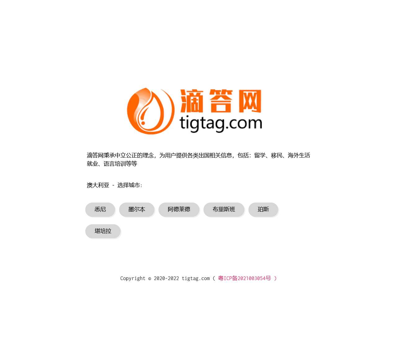 滴答网是一家提供悉尼、墨尔本、阿德莱德、布里斯班、珀斯、堪培拉等地的信息和服务的网站。我们致力于为用户提供全面而准确的城市相关信息,协助他们更好地了解和探索这些城市。