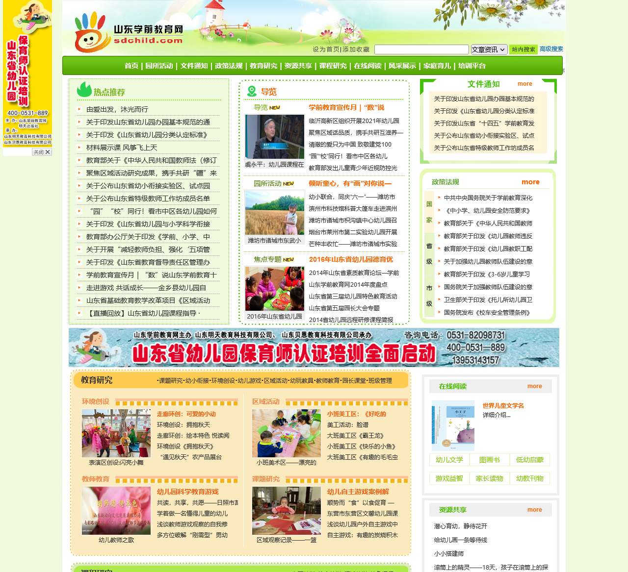 山东学前教育网由明天出版社主办。作为省内学前教育的门户网站,山东学前教育网以全省学前教育工作者、幼儿家长为服务对象,以提供学前教育资讯、学术交流、网络互动等多项服务为办网宗旨。