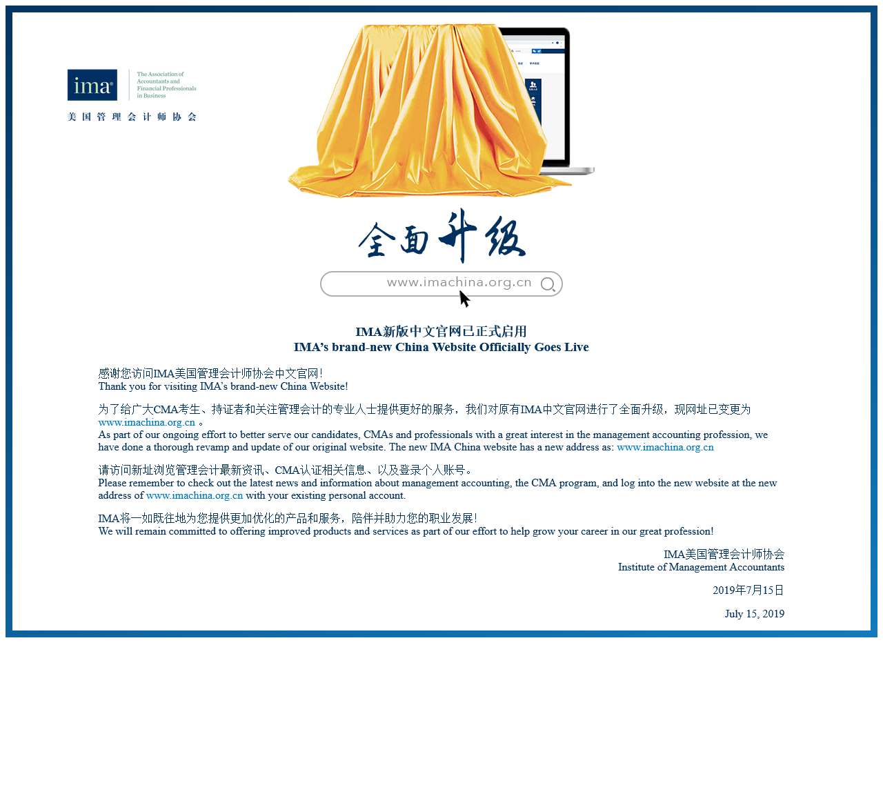 | 关于我们 | 在这个页面上,您可以了解有关IMA China 的背景和发展历程,以及我们的组织架构和管理团队。 |