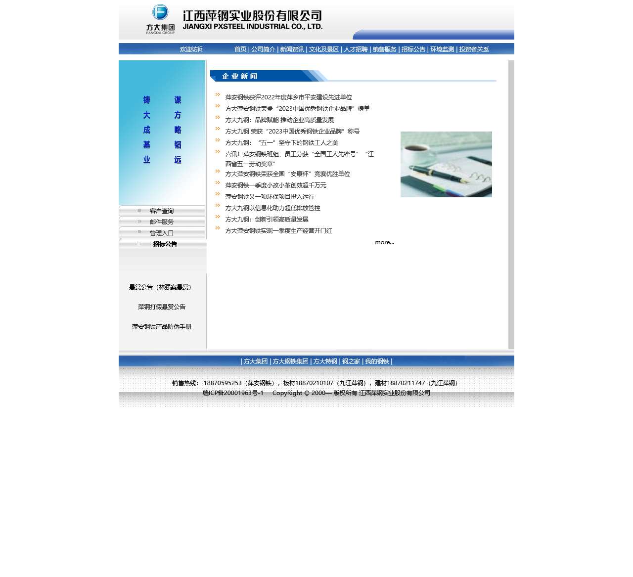 感谢您访问江西萍钢实业股份有限公司的网站首页,如果您对我们的公司或产品有任何疑问或需求,请随时与我们联系。