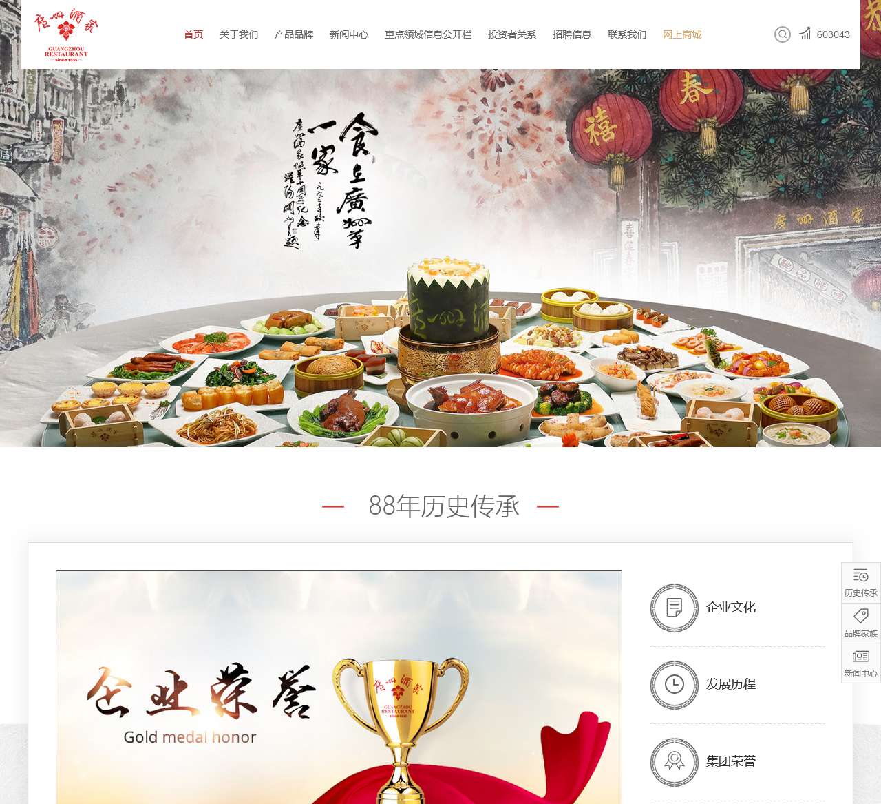 - 集团荣誉:展示广州酒家集团所获得的荣誉和奖项。