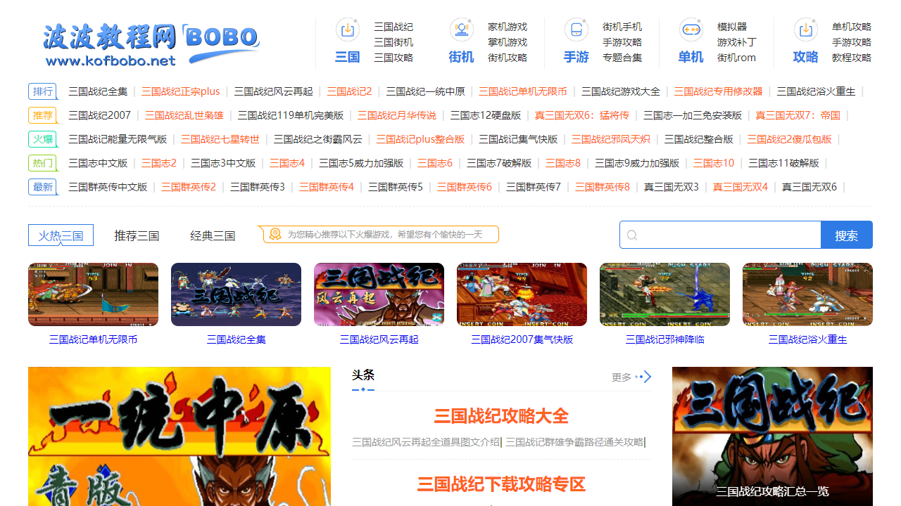 - 波波三国战纪游戏网也关注手游领域,我们整理了一系列三国手游的攻略和介绍。不论您是喜爱街机手机还是追求各类手游,我们都为您提供了丰富的资讯。