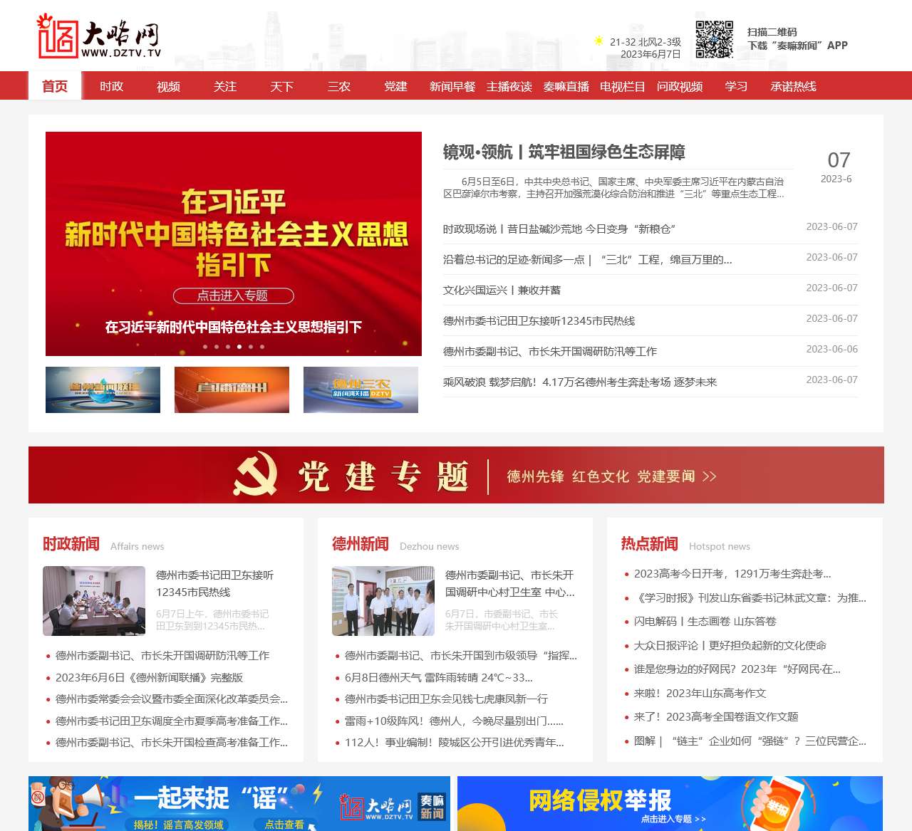 | 时政 | 党建要闻、红色文化、德州先锋、新闻早餐、问政热点、问政追踪、承诺热线 |