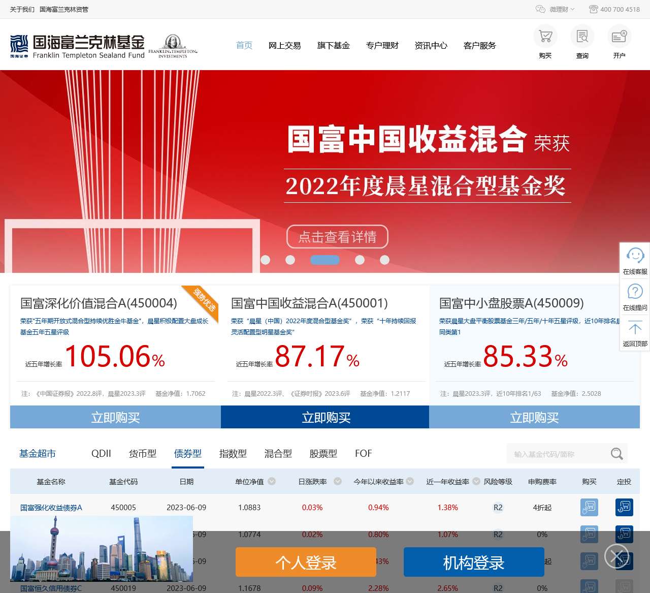 在网站的底部,您可以找到更多有关国海富兰克林基金的信息: