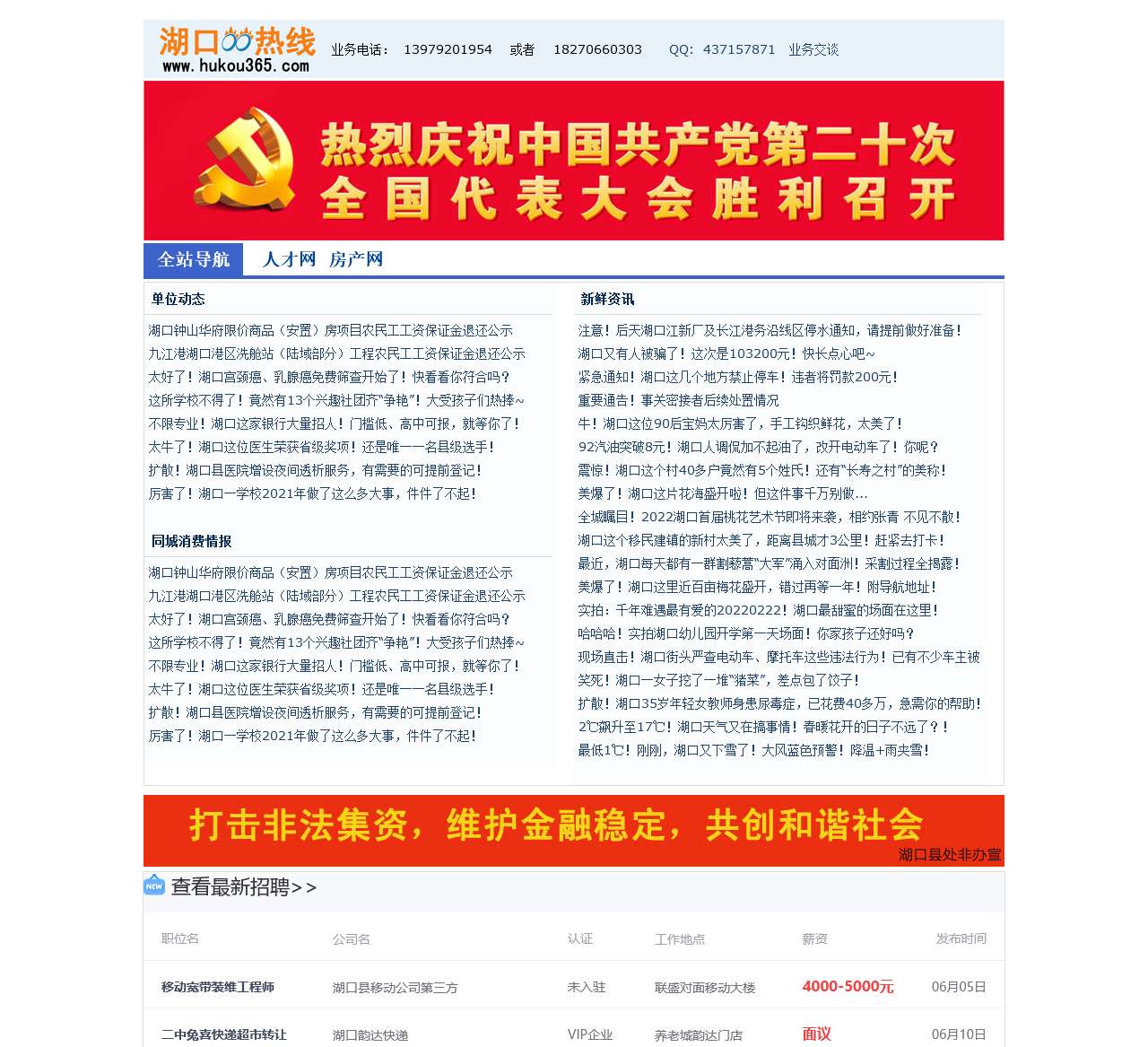 湖口热线网站内容范围涉及到百姓生活各个方面,如湖口新闻、湖口论坛,湖口二手、湖口招聘、湖口房产、湖口指南等,