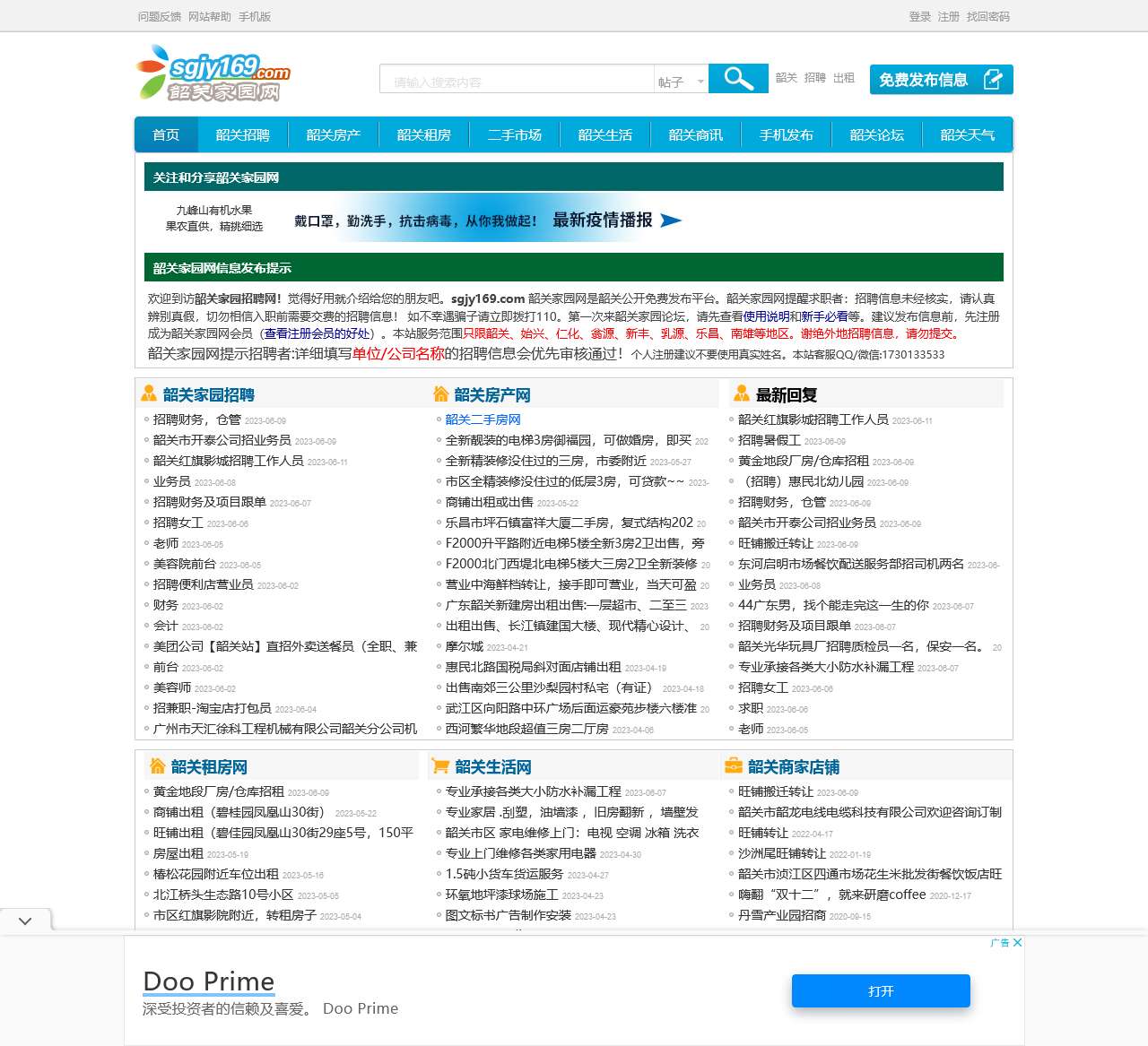 韶关家园网的首页涵盖了韶关市的各个方面信息,包括招聘、房产、租房、二手交易、生活资讯、天气预报等内容,为用户提供全面的信息服务。