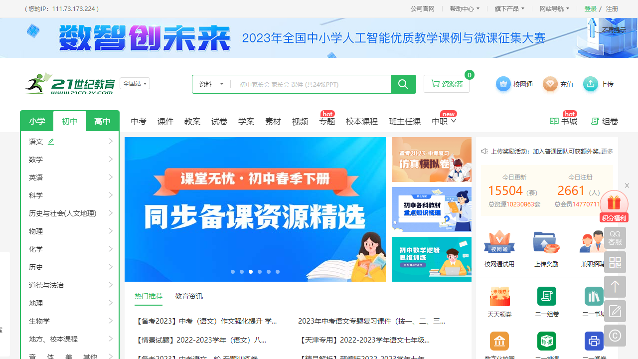 国内排名前列的中小学教育资源网,提供全国中小学各版本教材的课件教案学案备课素材试卷练习等资源下载。资源多、时效强、质量高,是中小学老师学生们的最佳选择
