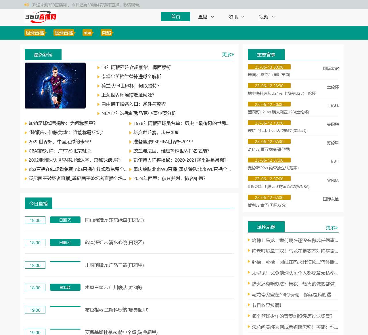 360直播网是国内最好的体育直播网站之一,主要提供足球直播,NBA直播,NBA直播吧等国内外体育赛事足球直播,我们是最用心做的足球直播和NBA直播吧