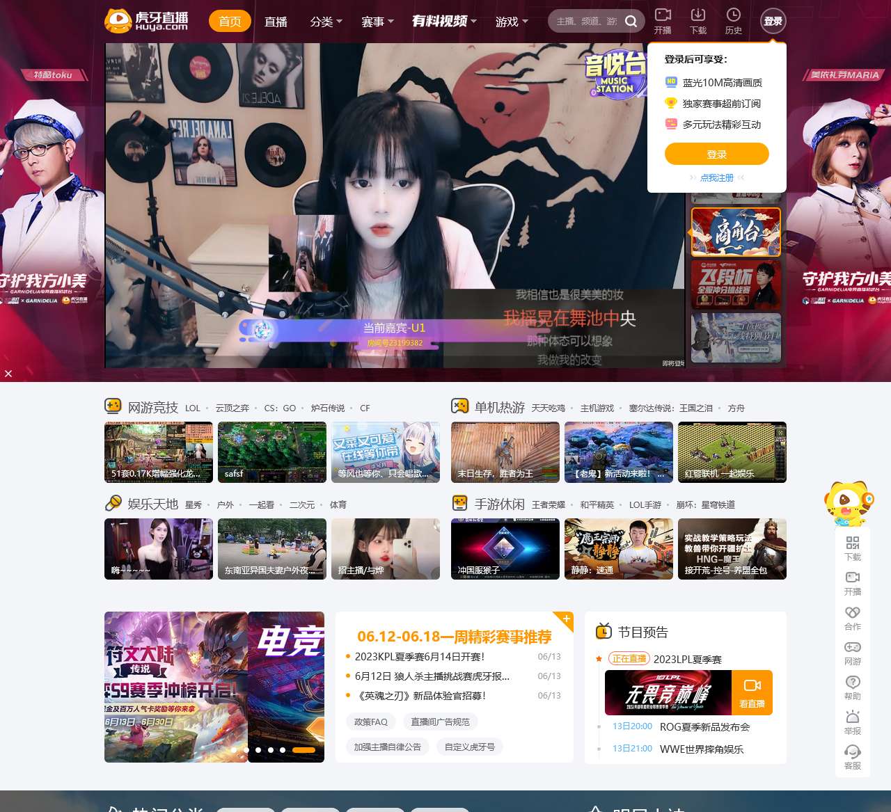 虎牙是一家专注于游戏直播和电竞赛事的在线平台。通过虎牙,用户可以观看各种直播内容,包括游戏直播、娱乐节目、户外活动、体育赛事等。虎牙提供了丰富的游戏直播内容,涵盖了网游竞技、单机热游、手游休闲等多个领域。