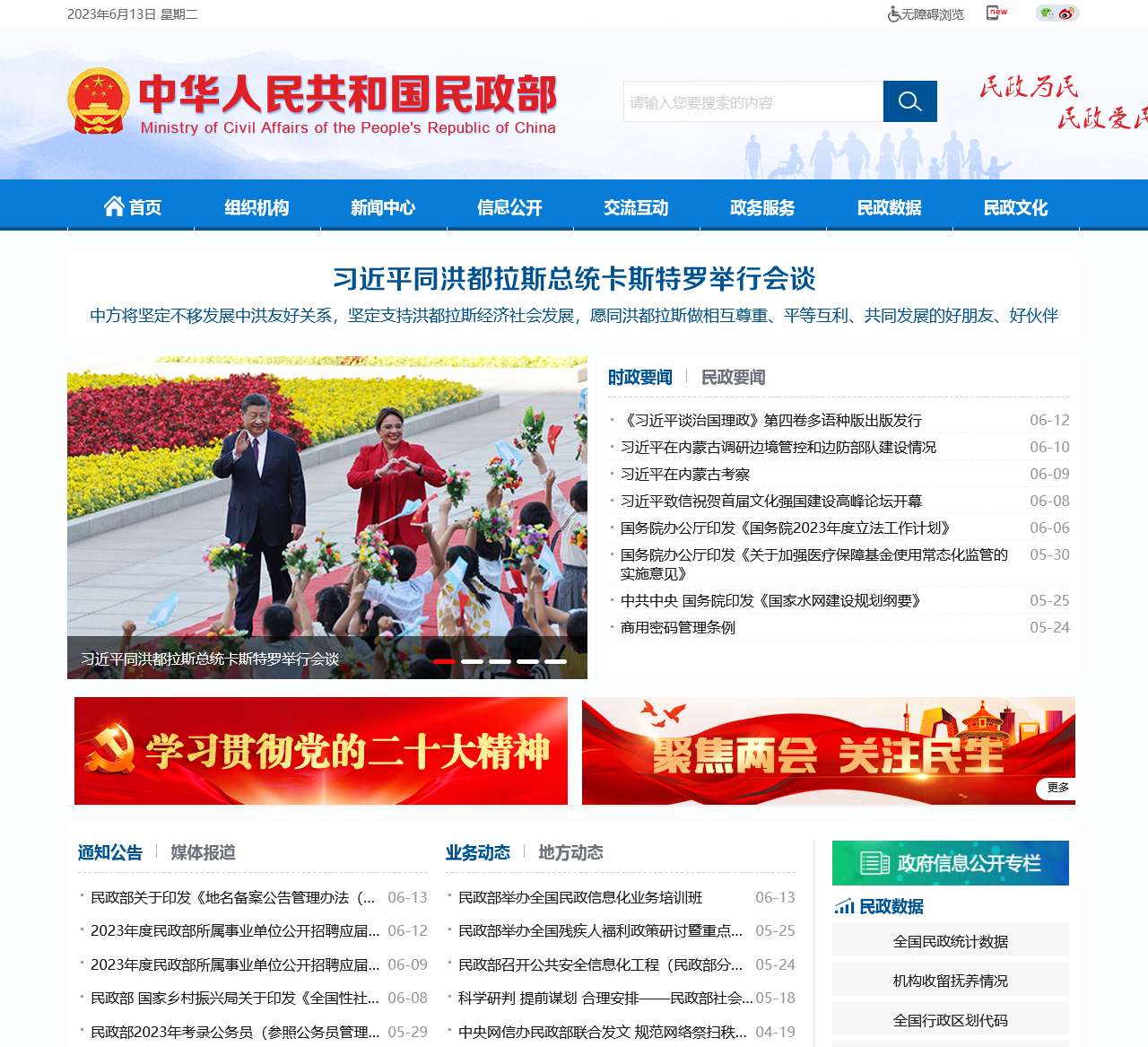 - 通知公告:民政部发布的通知、公告和文件。