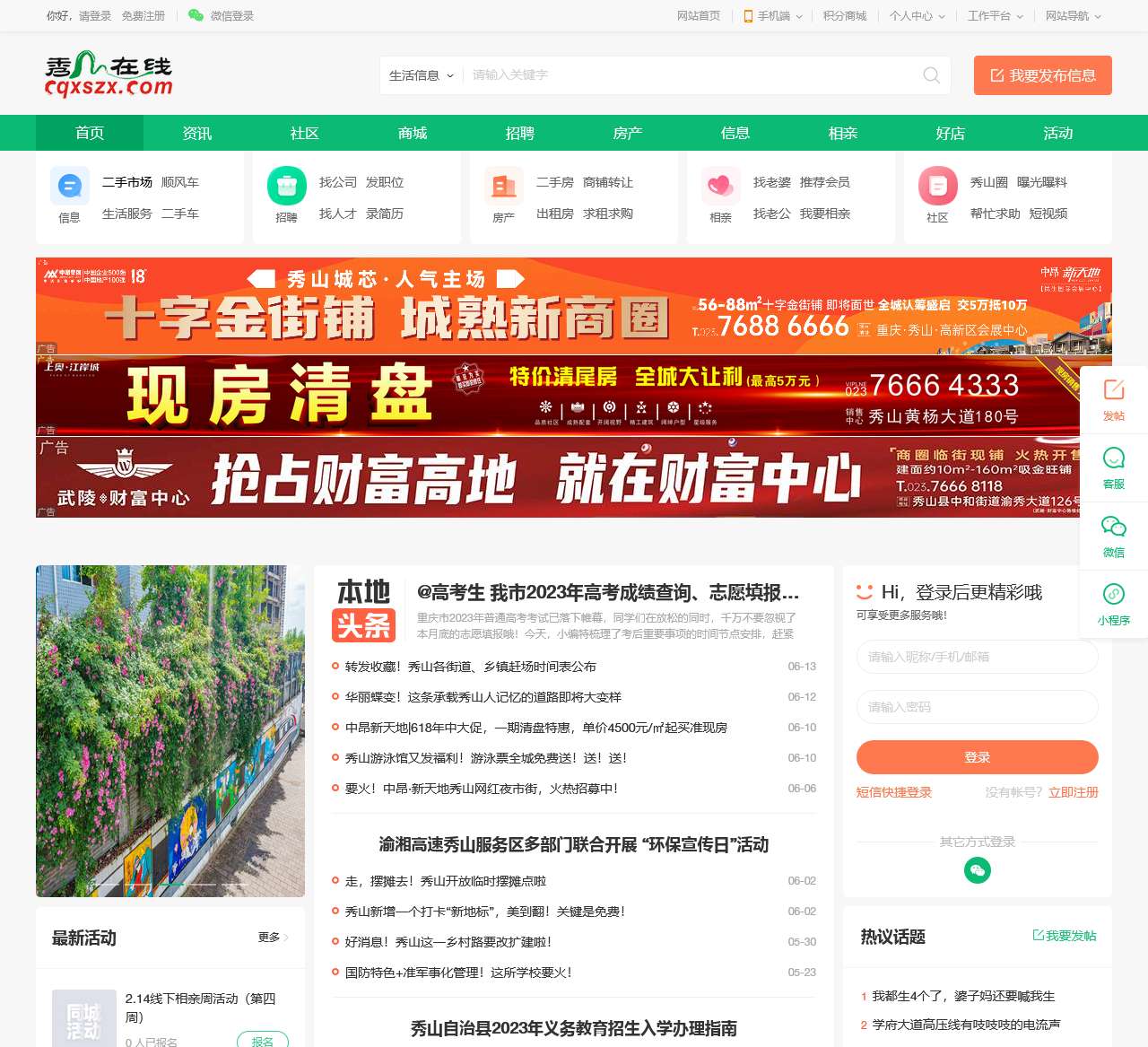 综上所述,秀山在线是一个提供丰富信息和服务的综合性网站,涵盖了房产、招聘、二手市场、生活服务等多个领域,为用户提供了便捷的操作和信息发布平台。