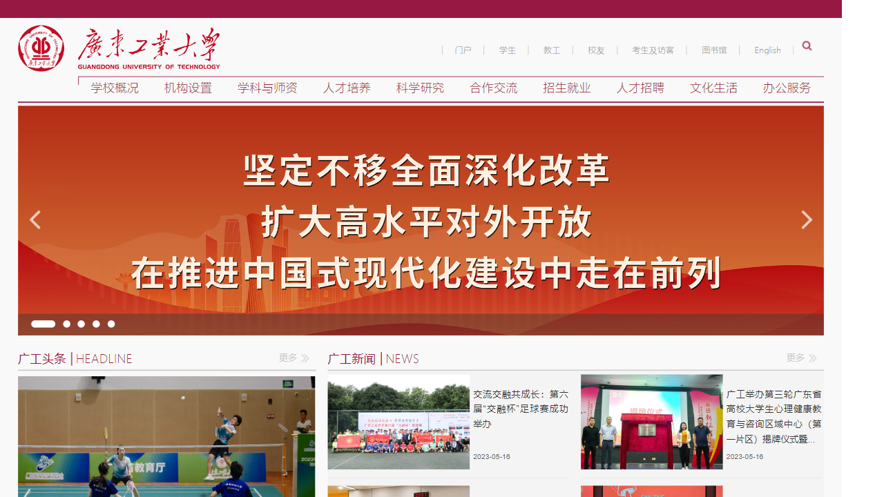 广东工业大学是一所位于广东省的知名大学。学校提供丰富的学科和师资资源,致力于培养优秀的人才。以下是该校网站首页的一些重大信息:
